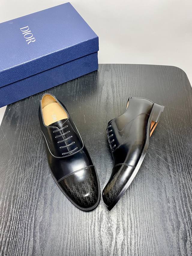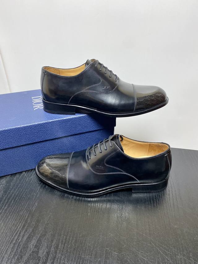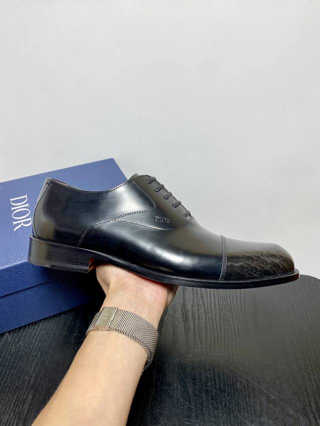 / Dior迪奥德比鞋|真皮底正装皮鞋|采用开边珠牛皮精心制作|水染牛皮内里|搭配经典的系带开合|侧面饰以精致的压花品牌标志|富有光泽的叠层鞋跟设计提升格调|可与正