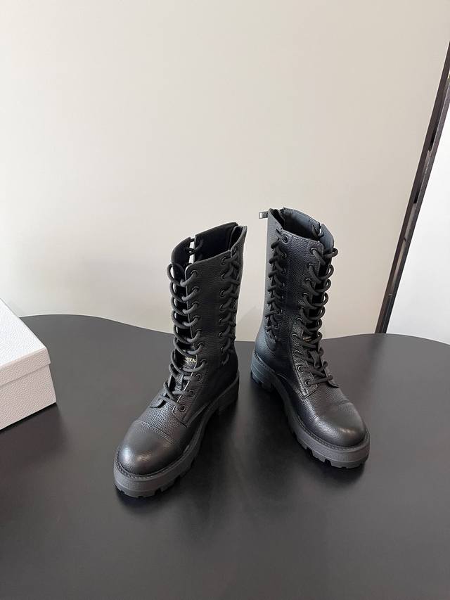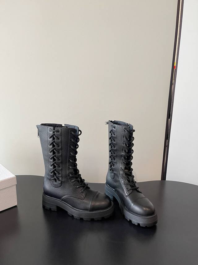 Dior|迪奥迪丽热巴 同款D-Road 靴 绑带马丁靴 中筒机车靴