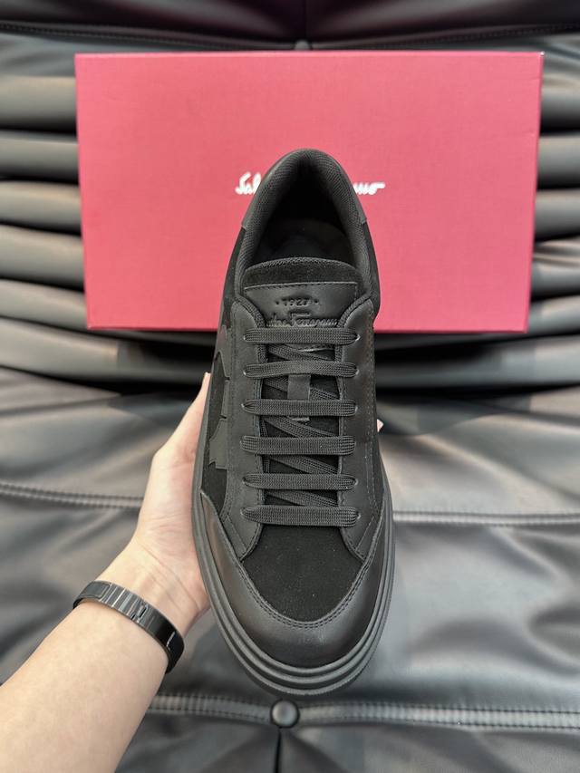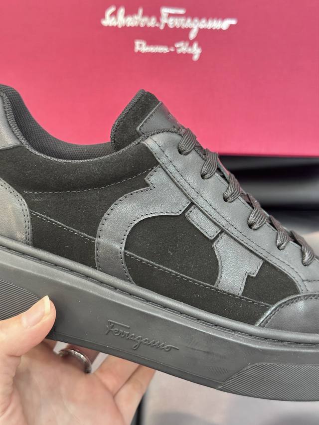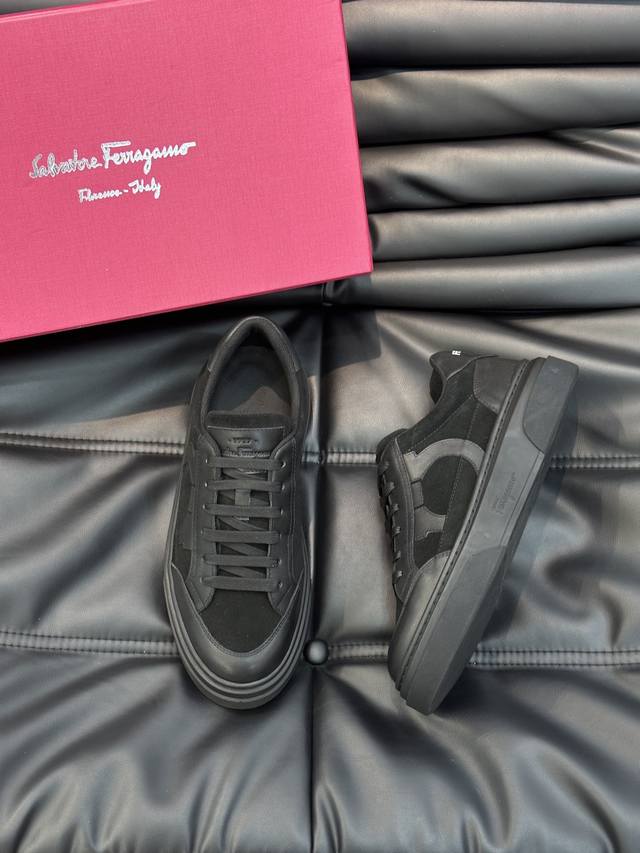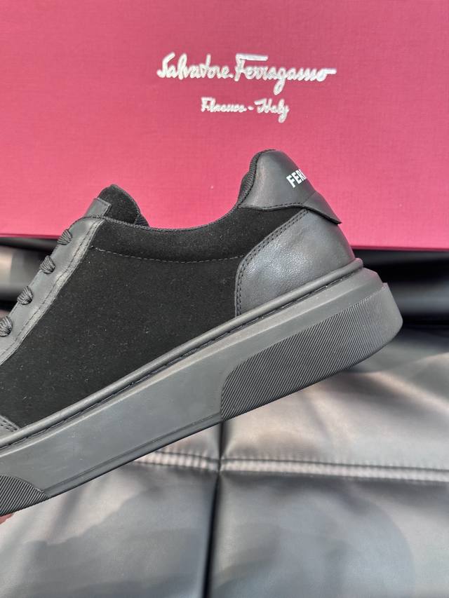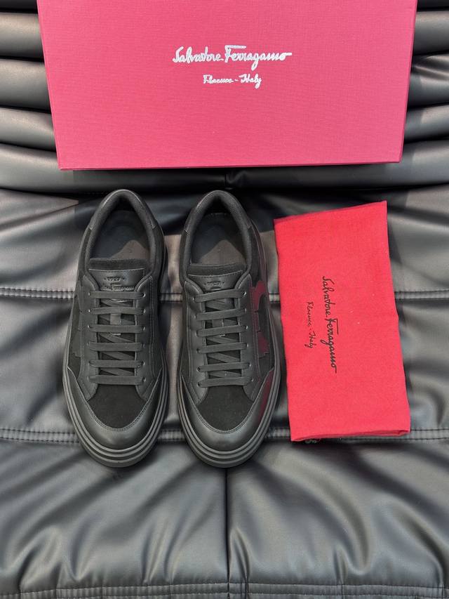 Ferragam* 新款炸街男神休闲鞋,专柜同步发售原厂配置,意大利进口原版牛皮,全进口羊皮里垫,男士休闲百搭款,鞋底原厂特供原版底超级舒适,原厂跟单货 .高品