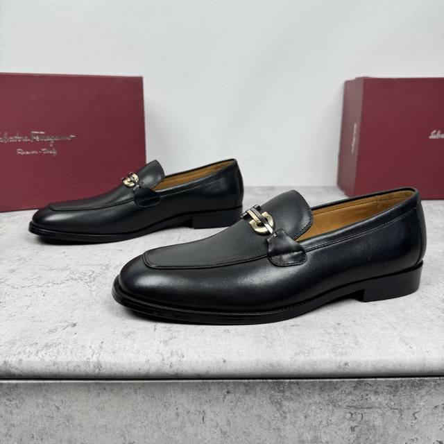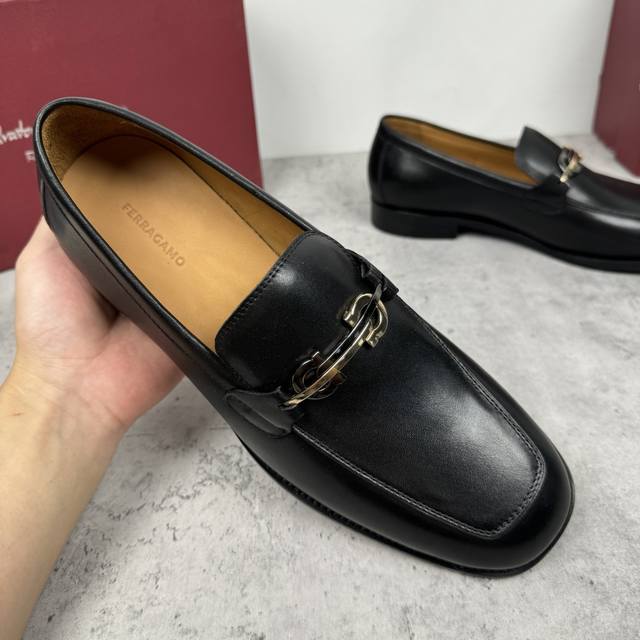 Ferragamo 菲拉格慕 男士金属扣精品皮鞋,这款男士乐福鞋型优雅,细节华丽,彰显端庄考究风范。面料采用进口小牛皮 开边珠牛皮,呈现令人惊艳的质感,内里本染细腻小胎牛皮,缀饰造型纤巧时髦!手工擦色真皮大底,后跟复合橡胶底片,舒适防滑,高清压纹Logo徽章,彰显专业制鞋大师的斐然技艺。每一个细节都是精工细作,标志性金属扣,简约又高级,一脚蹬设计,适配商务、休闲等多种场景,轻松切换风格。全套原包装!多色可选!