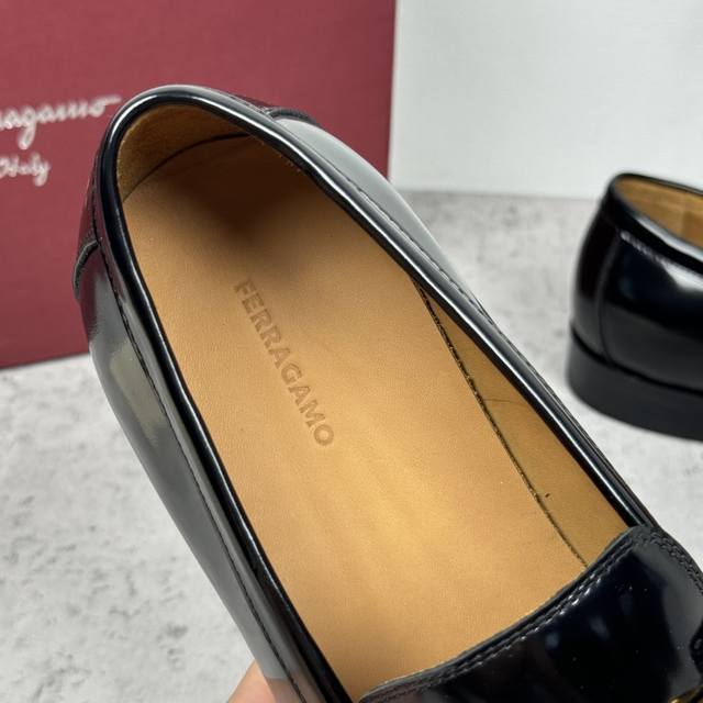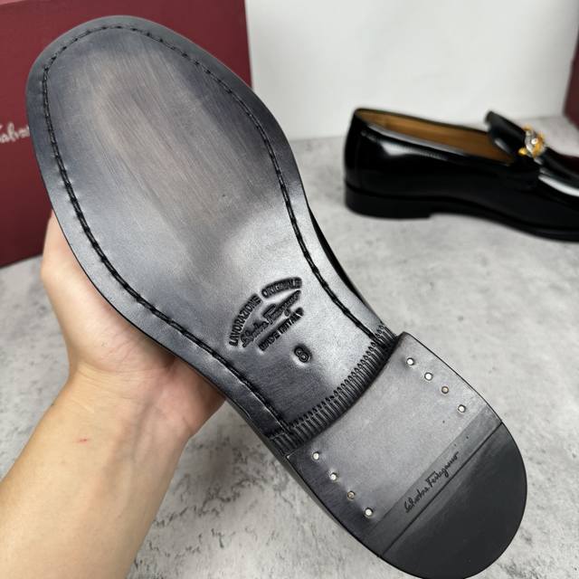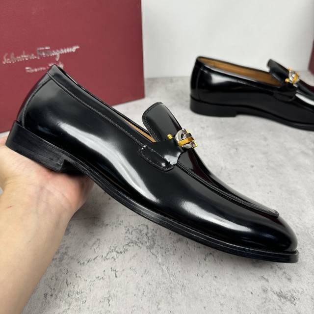 Ferragamo 菲拉格慕 男士金属扣精品皮鞋,这款男士乐福鞋型优雅,细节华丽,彰显端庄考究风范。面料采用进口小牛皮 开边珠牛皮,呈现令人惊艳的质感,内里本染细腻小胎牛皮,缀饰造型纤巧时髦!手工擦色真皮大底,后跟复合橡胶底片,舒适防滑,高清压纹Logo徽章,彰显专业制鞋大师的斐然技艺。每一个细节都是精工细作,标志性金属扣,简约又高级,一脚蹬设计,适配商务、休闲等多种场景,轻松切换风格。全套原包装!多色可选!