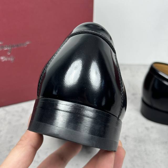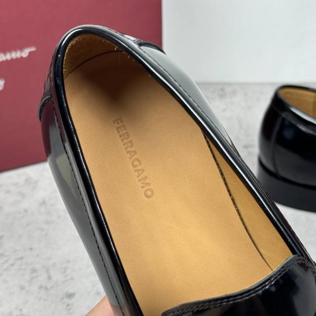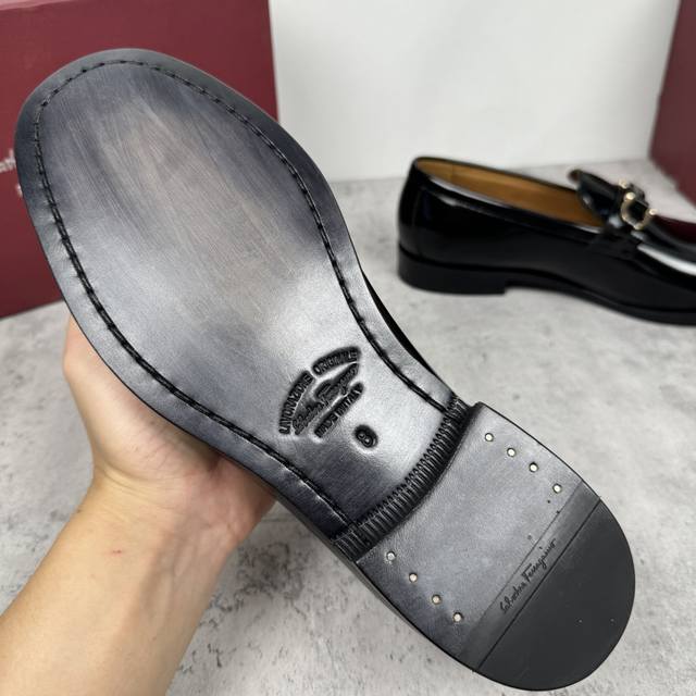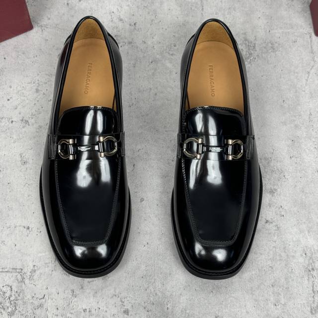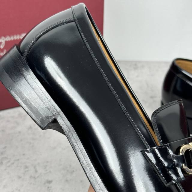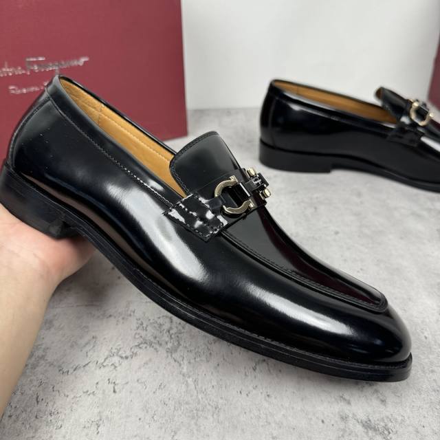 Ferragamo 菲拉格慕 男士金属扣精品皮鞋,这款男士乐福鞋型优雅,细节华丽,彰显端庄考究风范。面料采用进口小牛皮 开边珠牛皮,呈现令人惊艳的质感,内里本染细腻小胎牛皮,缀饰造型纤巧时髦!手工擦色真皮大底,后跟复合橡胶底片,舒适防滑,高清压纹Logo徽章,彰显专业制鞋大师的斐然技艺。每一个细节都是精工细作,标志性金属扣,简约又高级,一脚蹬设计,适配商务、休闲等多种场景,轻松切换风格。全套原包装!
