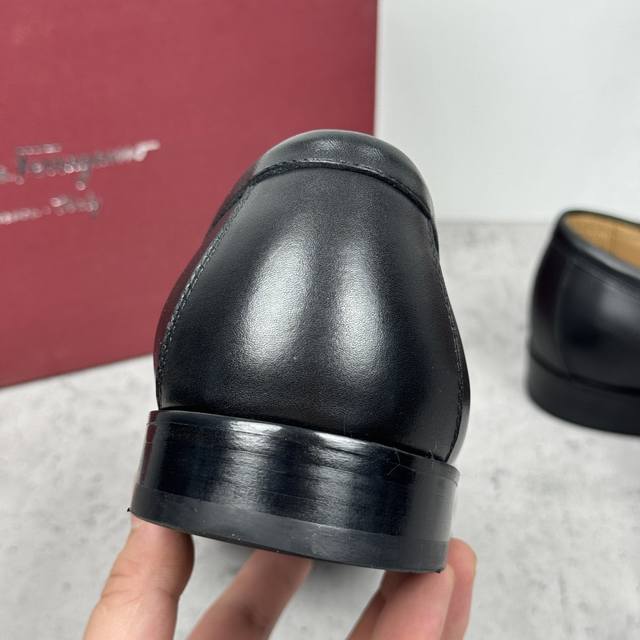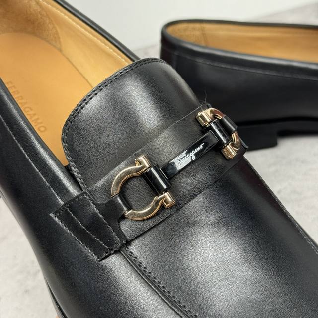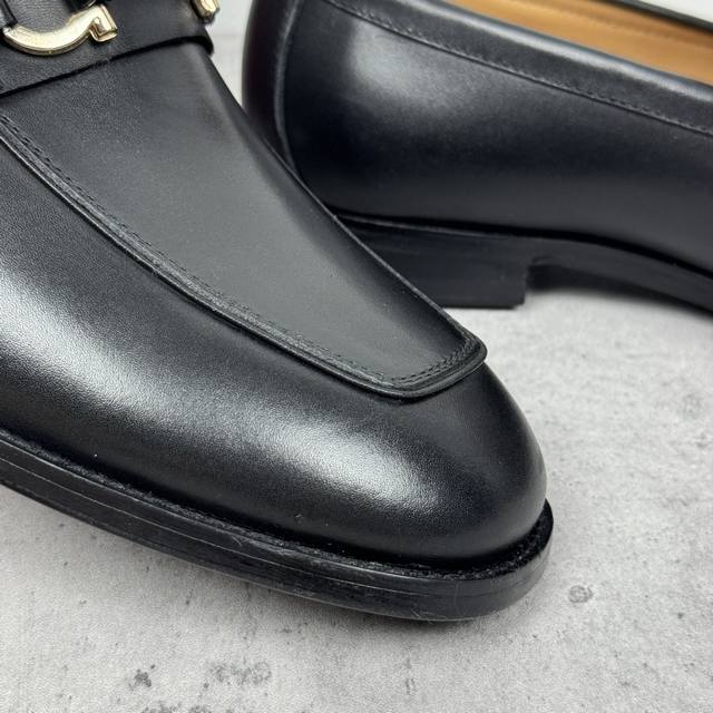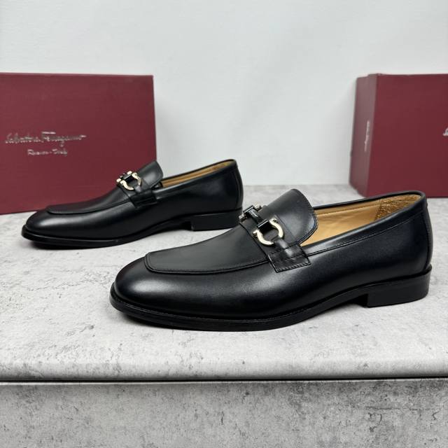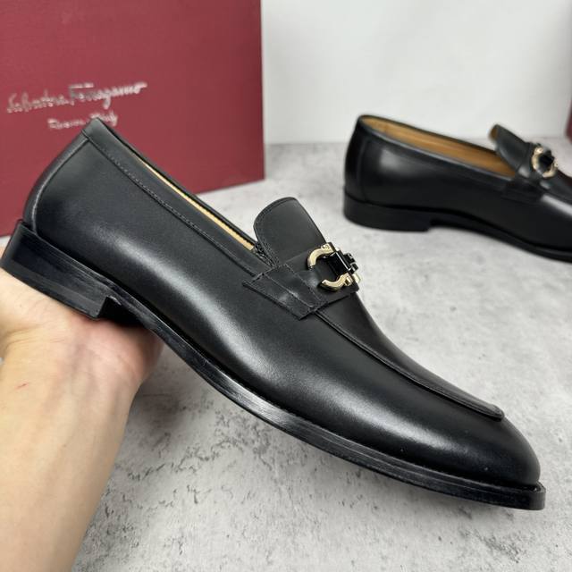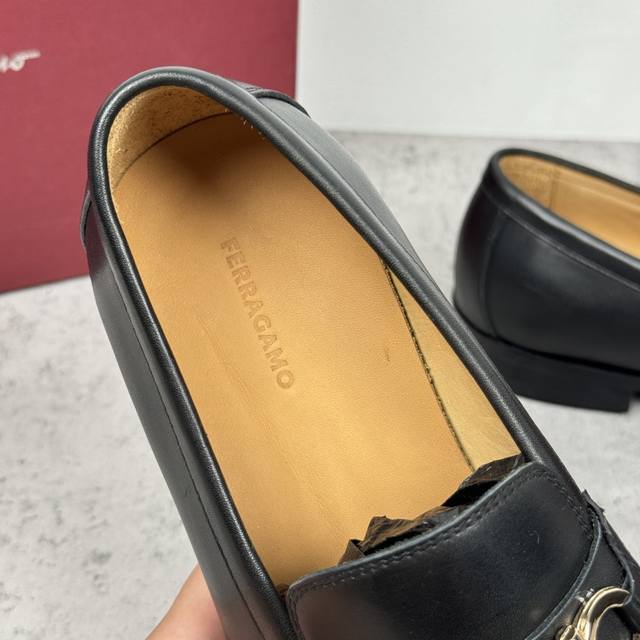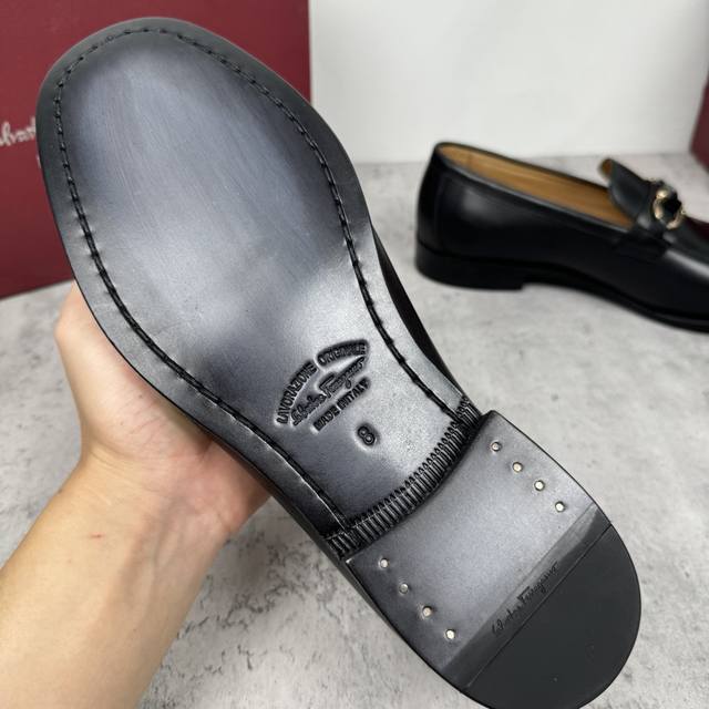 Ferragamo 菲拉格慕 男士金属扣精品皮鞋,这款男士乐福鞋型优雅,细节华丽,彰显端庄考究风范。面料采用进口小牛皮 开边珠牛皮,呈现令人惊艳的质感,内里本染细腻小胎牛皮,缀饰造型纤巧时髦!手工擦色真皮大底,后跟复合橡胶底片,舒适防滑,高清压纹Logo徽章,彰显专业制鞋大师的斐然技艺。每一个细节都是精工细作,标志性金属扣,简约又高级,一脚蹬设计,适配商务、休闲等多种场景,轻松切换风格。全套原包装!
