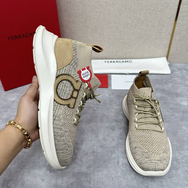 Ferracamo 菲拉 ** Gancini 休闲鞋运动鞋系列,厚底休闲鞋可为造型增添一丝时髦的动感活力 采用涤纶面线飞织制成 搭配圆鞋带,侧面饰有磨砂Gancini标识 鞋跟上牛皮扣环,确保穿脱轻松且舒适合脚 内里垫脚独立一体乳胶回弹牛皮垫 超轻双重密度橡胶发泡鞋底,超舒适百搭款 .