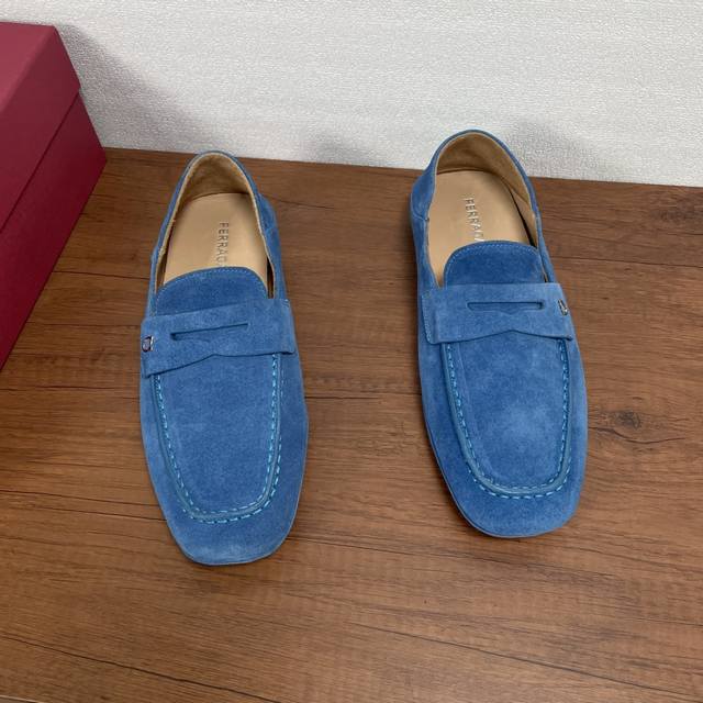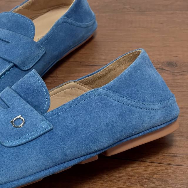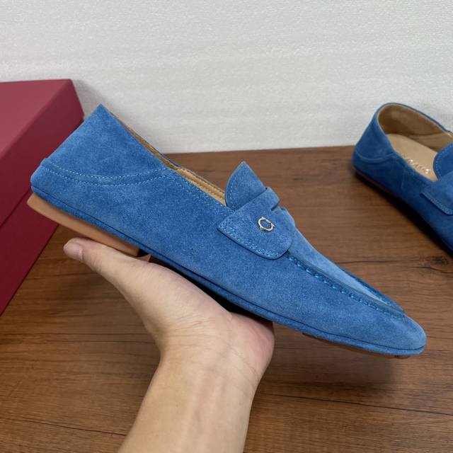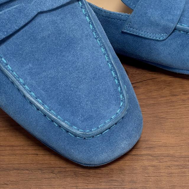 这款乐福鞋后跟可踩设计,提供穿脱便捷和实用性,采用柔软小牛皮和绒面皮革打造,经典乐福鞋鞋面,便士横饰带风格,外侧配以钌灰色Hug扣饰,优雅型格邂逅随性气质,本蒅牛皮内里加持,银色Logo标识牛皮脚垫,呈现令人惊艳的柔韧质感。鞋身全包设计,搭配轻盈橡胶射出鞋底,底部饰有定制沟纹,上脚轻便柔软舒适!配原盒包装防尘袋!