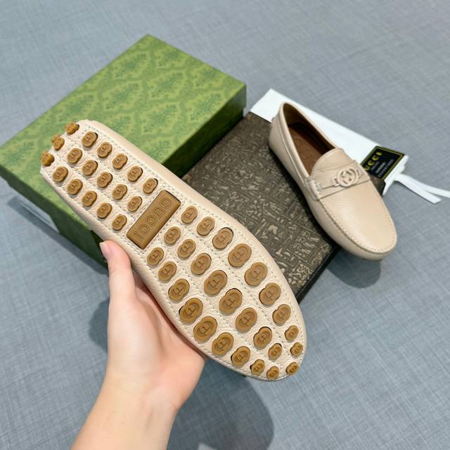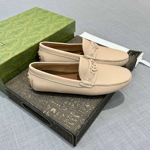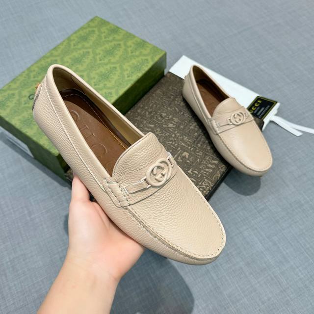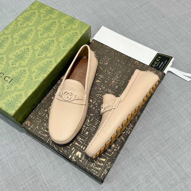 G家 男士豆豆鞋 专柜同步 高端品质 市场上顶级版本 纯手制作 牛皮粒纹杏色牛里。 卡其色,尺码38-45。