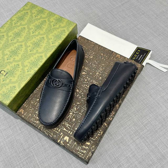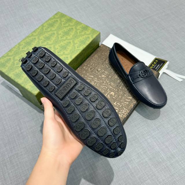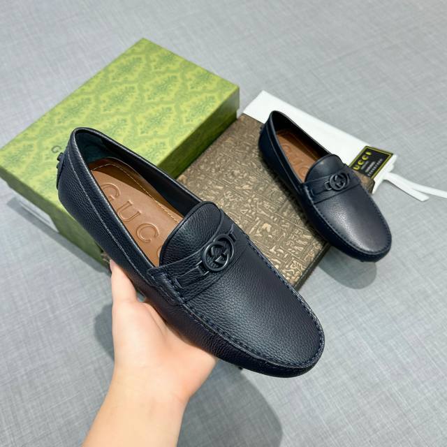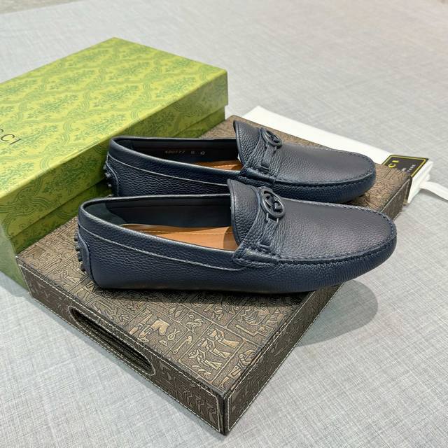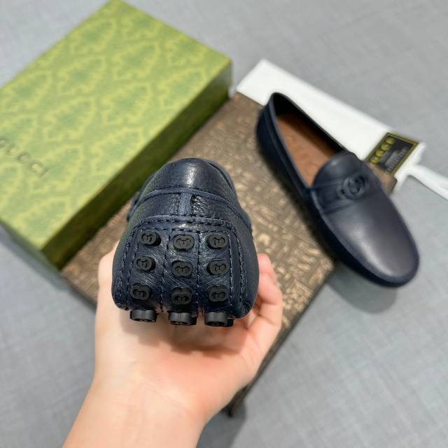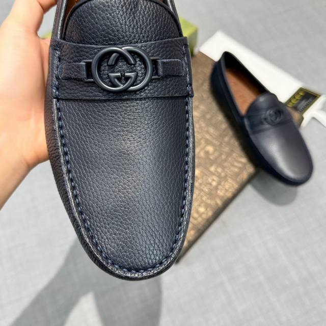 G家 男士豆豆鞋 专柜同步 高端品质 市场上顶级版本 纯手制作 牛皮粒纹蓝色牛里。 深蓝色,尺码38-45。