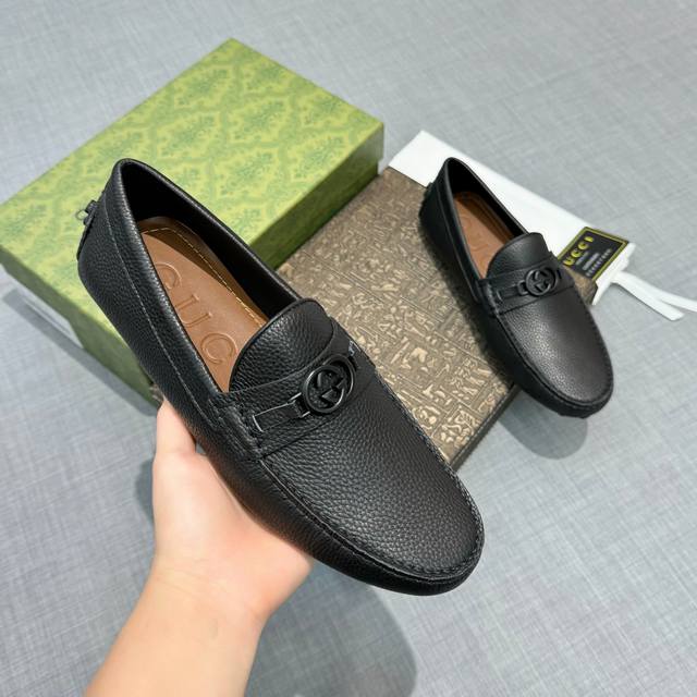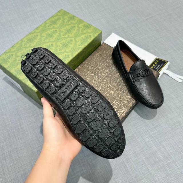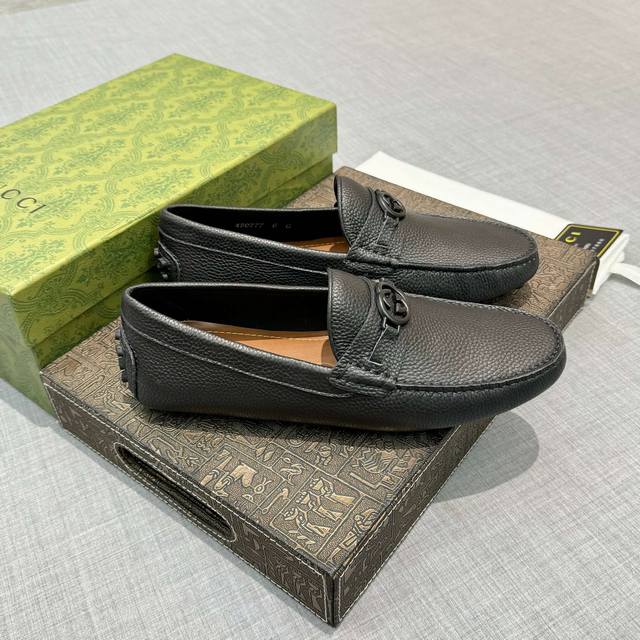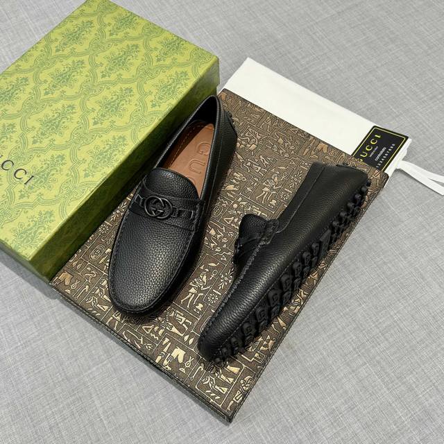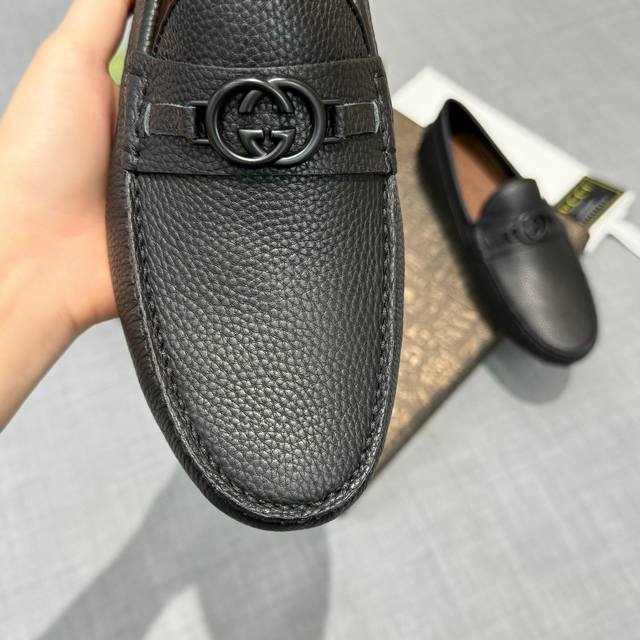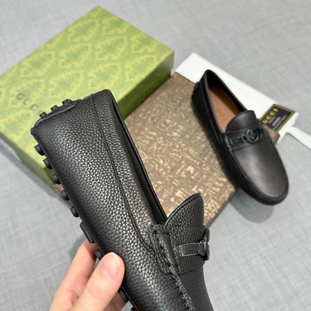 G家 男士豆豆鞋 专柜同步 高端品质 市场上顶级版本 纯手制作 牛皮粒纹黑色牛里。 黑色,尺码38-45。