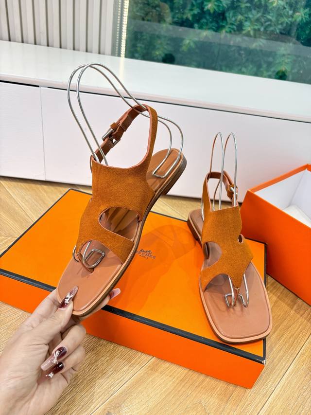 G393所见即所得顶级HermèS 爱马仕25Wf春夏新品方头Karen夹脚凉鞋