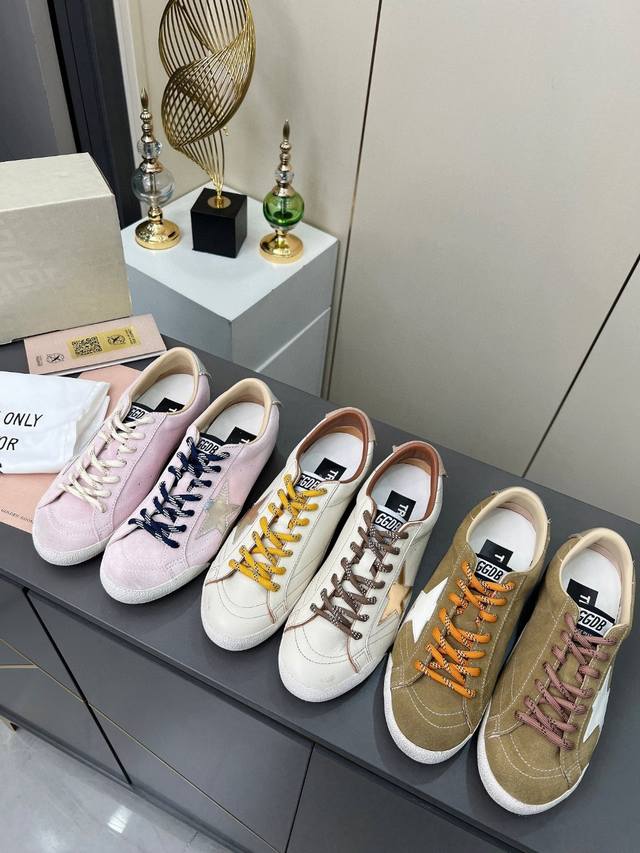 Golden Goose Ggdb百搭两穿休闲鞋双色鞋带,追求“完美的不完美”、品牌标志性的Lived-In 岁月留痕,做旧处理和独特的星星元素,是意大利手作工艺与经典外观的完美结合,不仅好穿辨识度高,表达了一种真实自由的态度,不刻意去追求一尘不染,随性不羁的痕迹反而更舒适自在 Material 材质