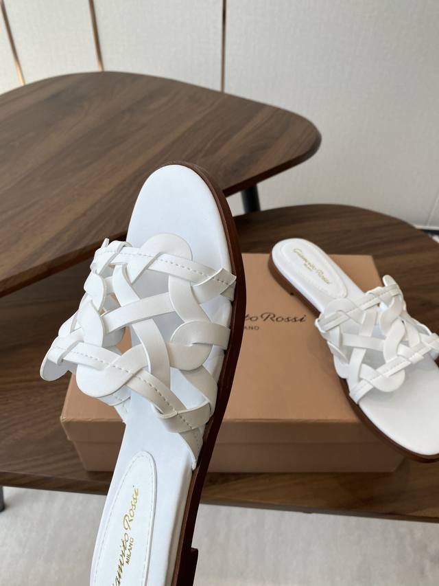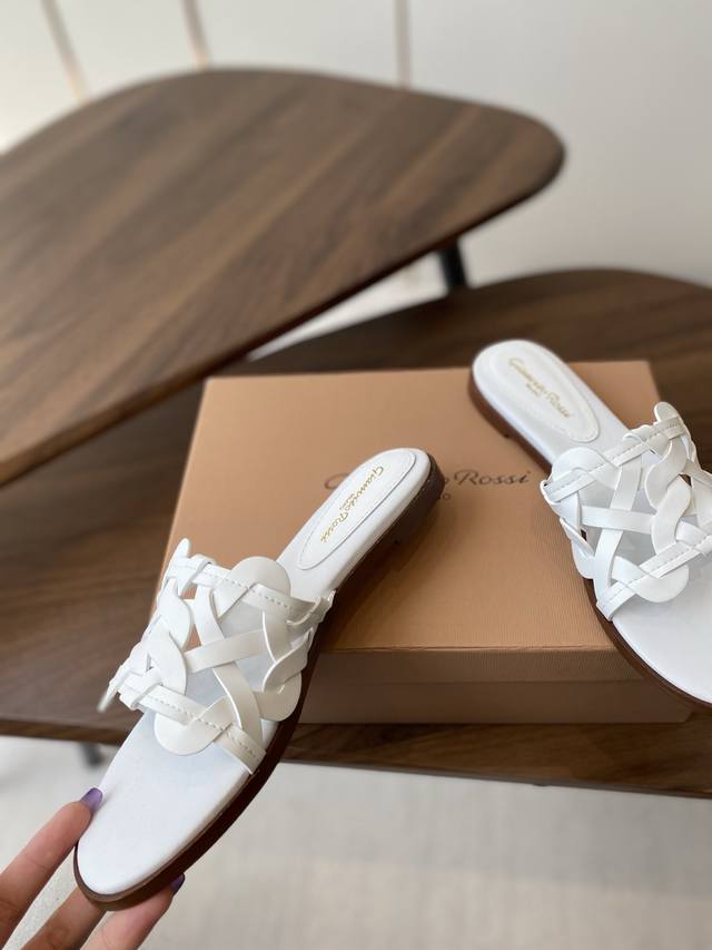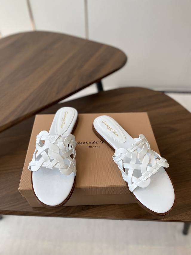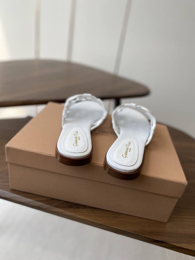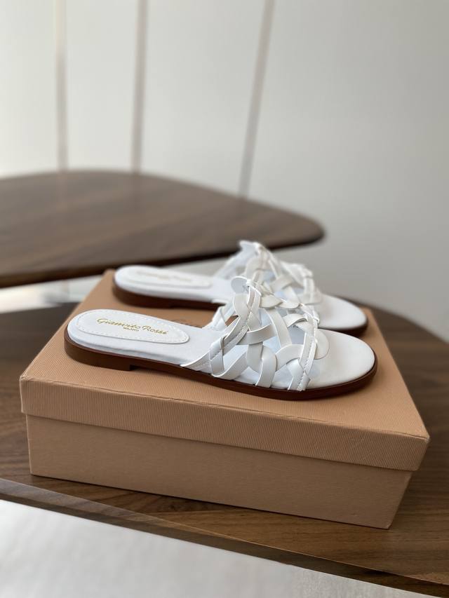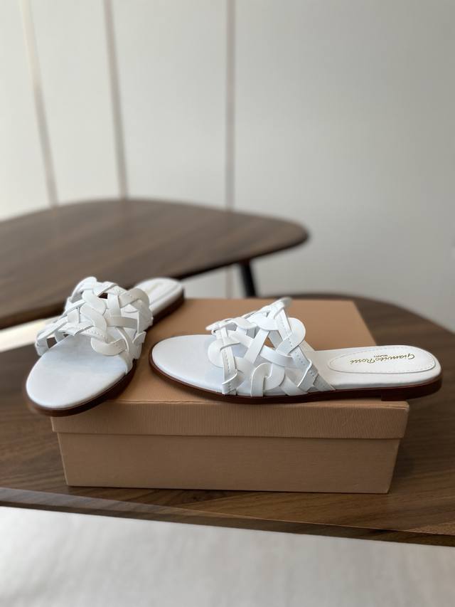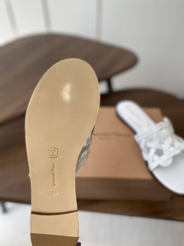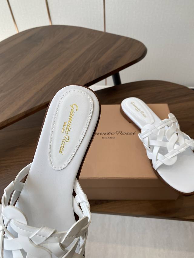 Gianvito Rossi 25 春夏新款 罗西Gr法式编织镂空平底凉拖鞋粗跟高跟拖鞋