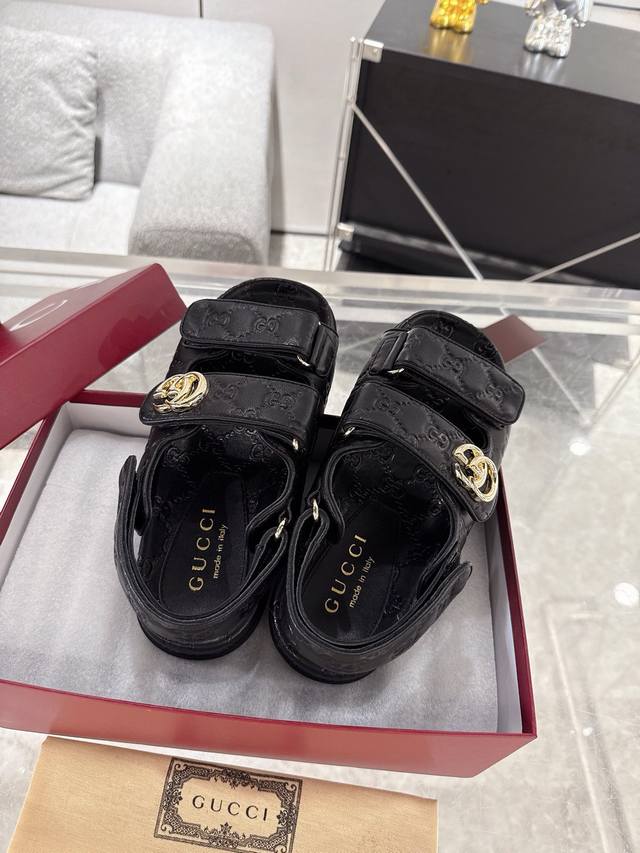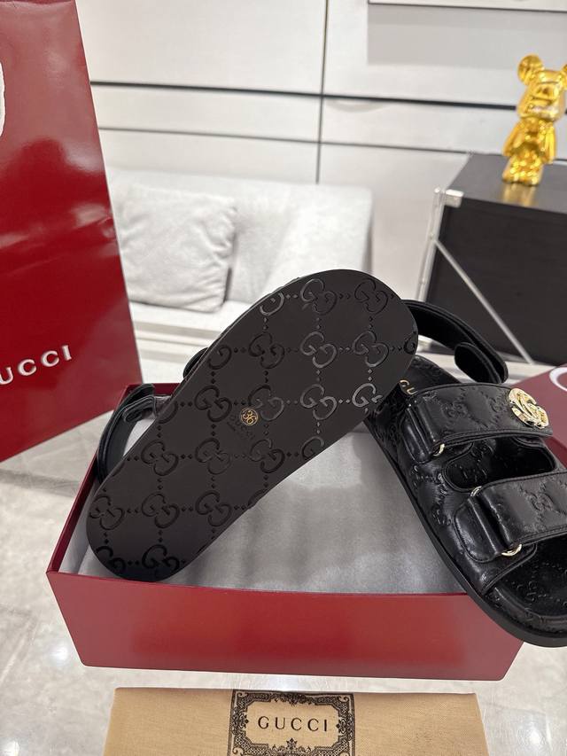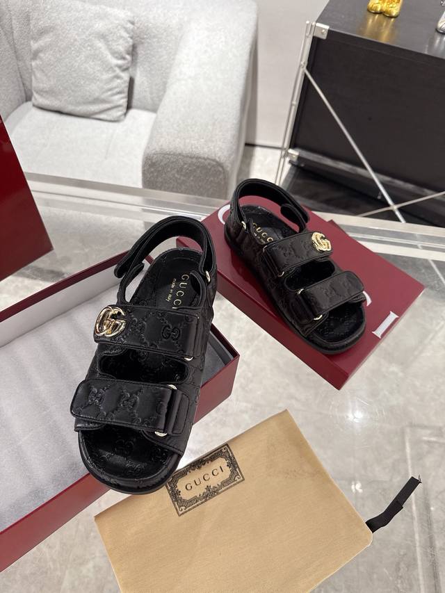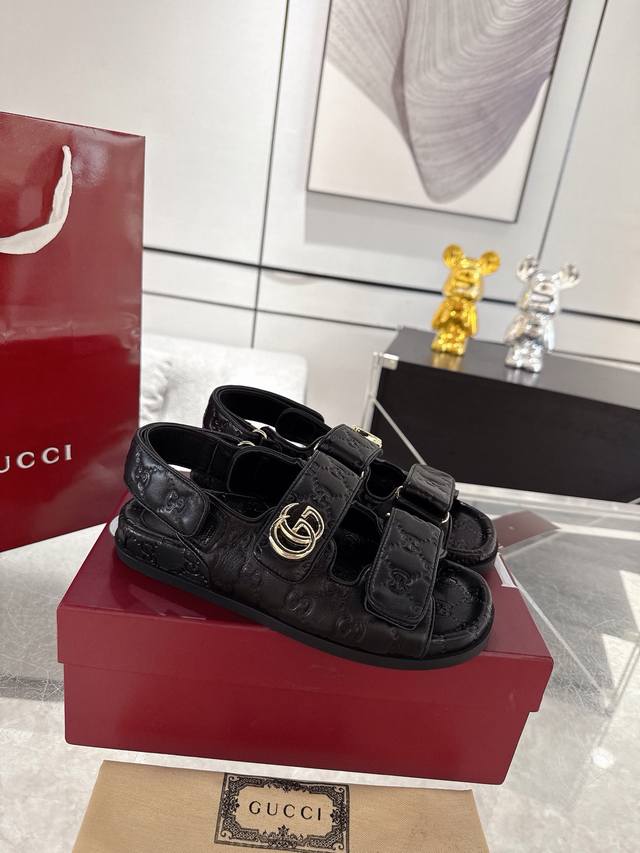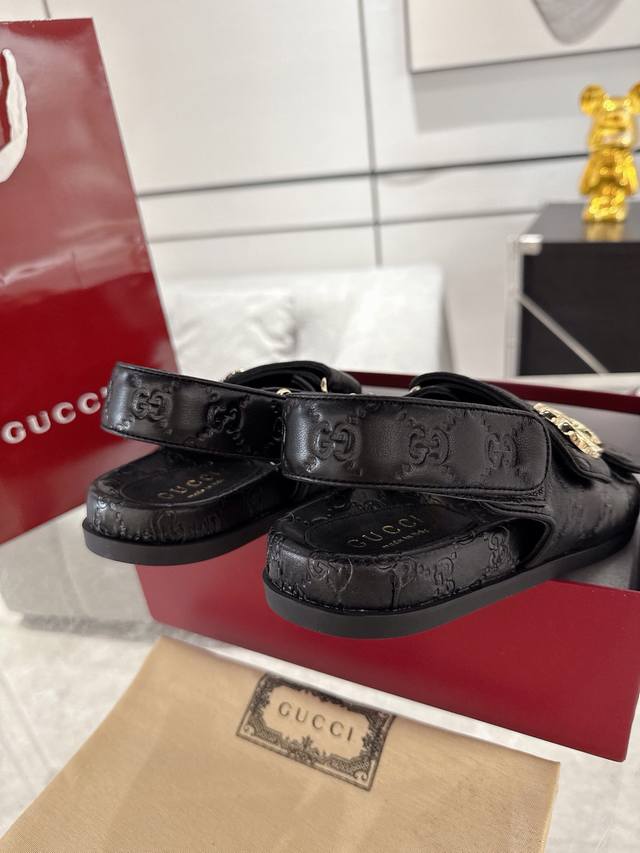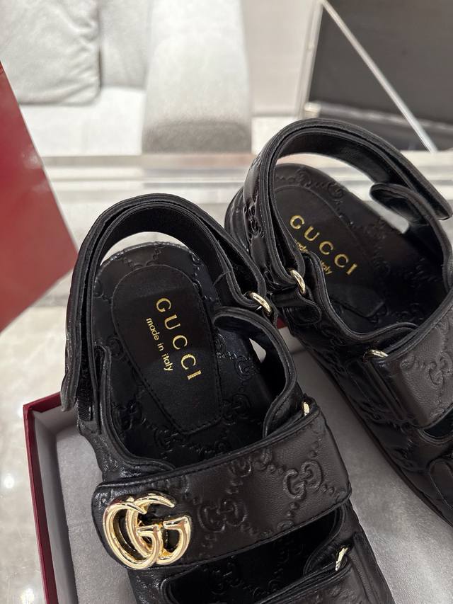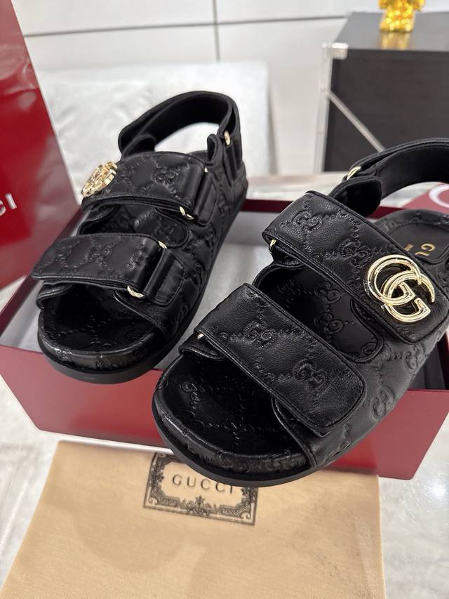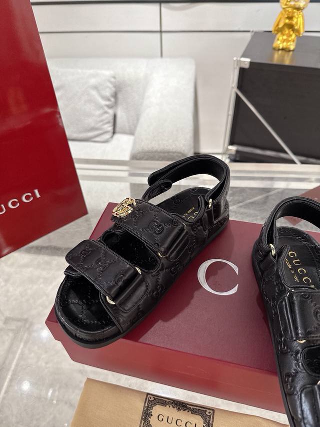 / Gucci女士压花Gg凉鞋 这款凉鞋以Gg皮革匠心打造,缀饰一眼可辨的双G标识,配以浅金色调配件,为整个设计注入一抹精致优雅气息 原版定制牛皮 羊京 内里定制羊