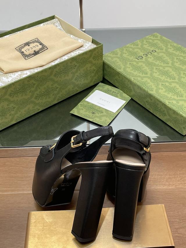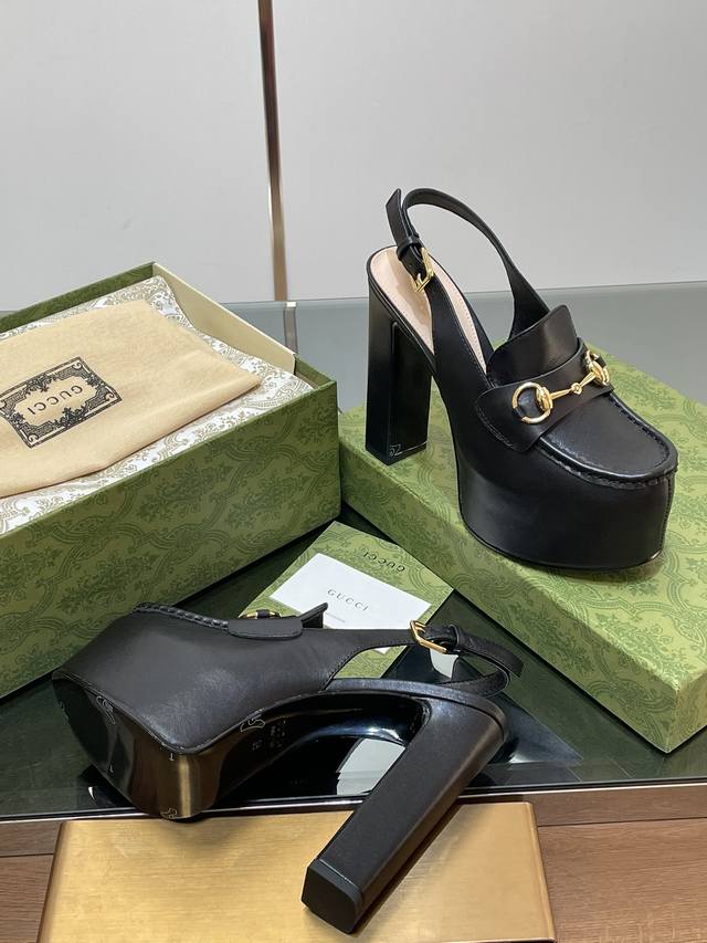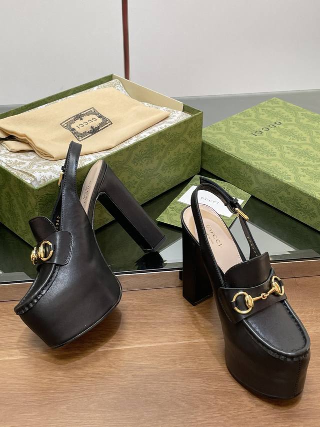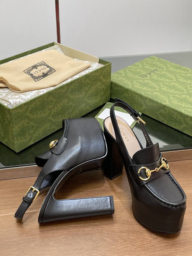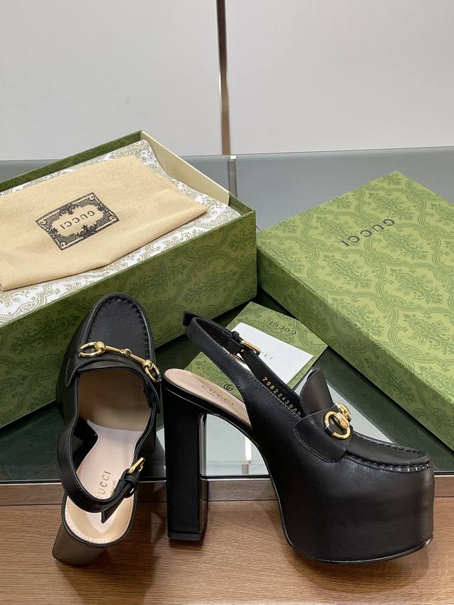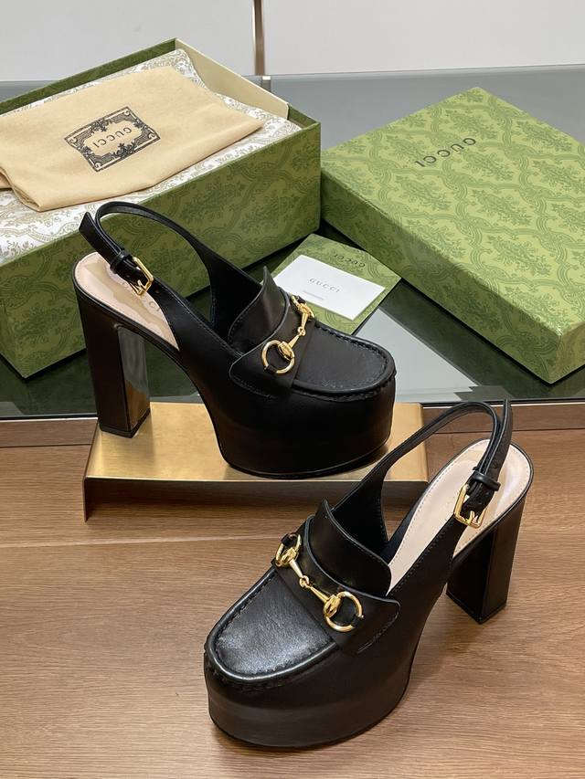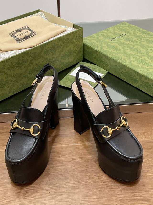 Gucci 古奇秋季新品防水台马鞍扣 马衔扣 厚底后系带乐福鞋平面小牛皮 高跟厚底防水台慕勒鞋,鞋柜必备款 原版套楦 高端品质