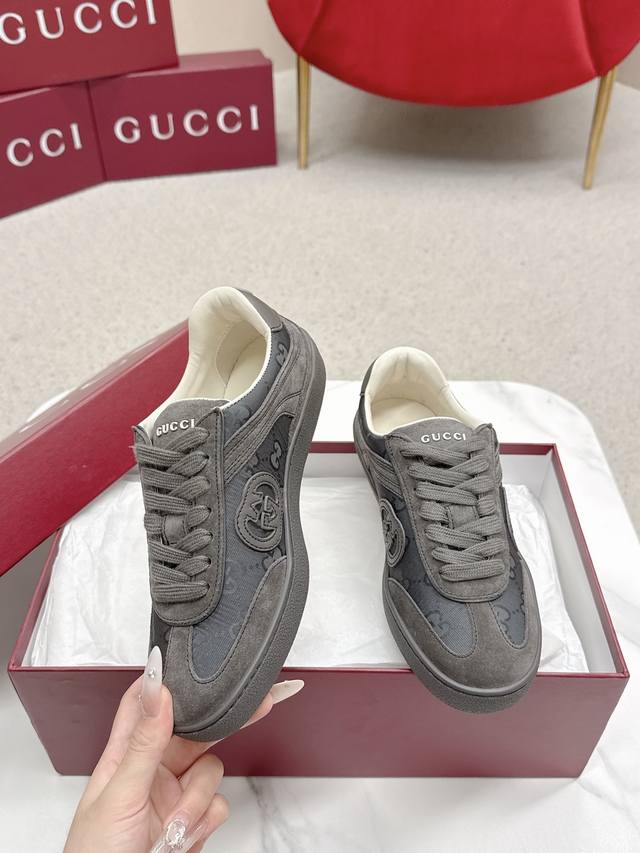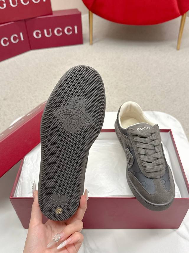 / Gucci 最新款 阿甘鞋 德训鞋 休闲鞋 复古时尚 简约高级 随意搭配 上脚非常轻便舒适鞋面原版牛皮面 网面拼接 羊皮内里 最新开模原版大底码数:女35-40