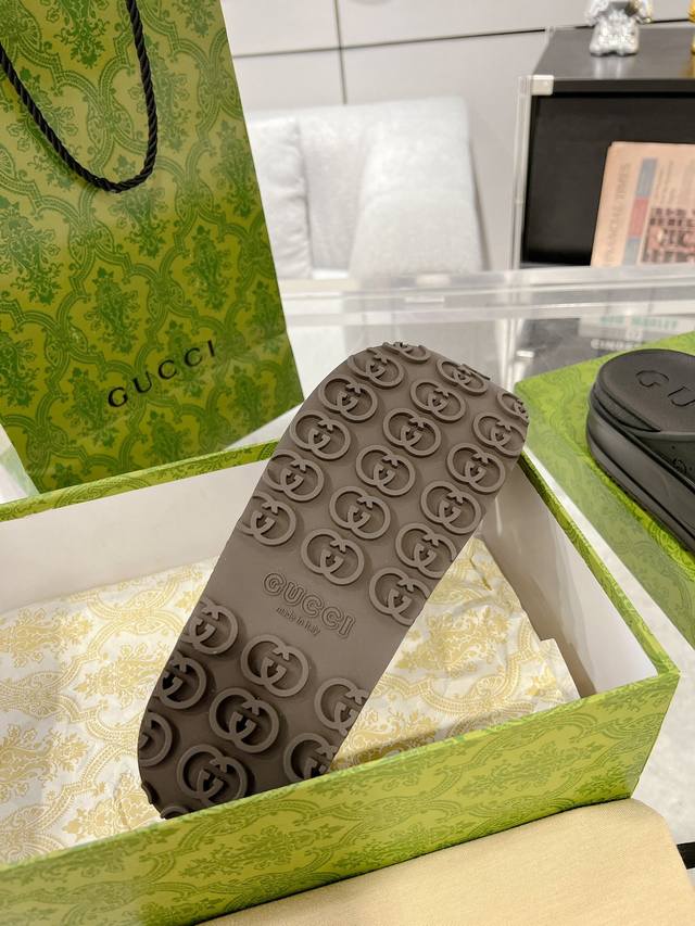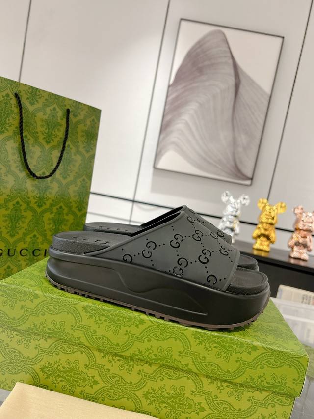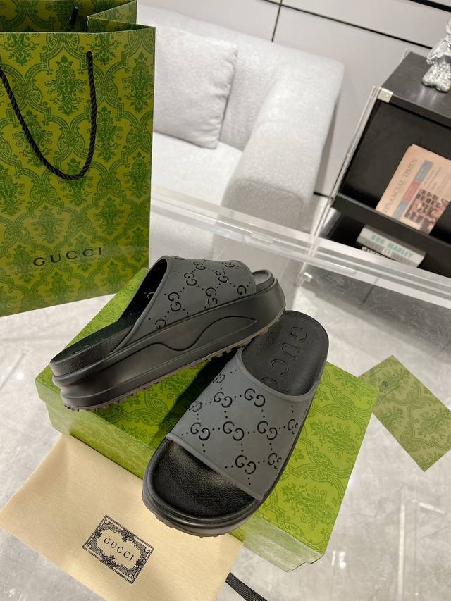 Gucci 25Ss 春夏单品 新款厚底沙滩情侣款拖鞋 拉腿增高神器 Yp一比一还原,所有细节 材质 舒适度 全部跟原版一样了 复刻度98%。底厚5Cm 码数:35-46 45.46订做不退换