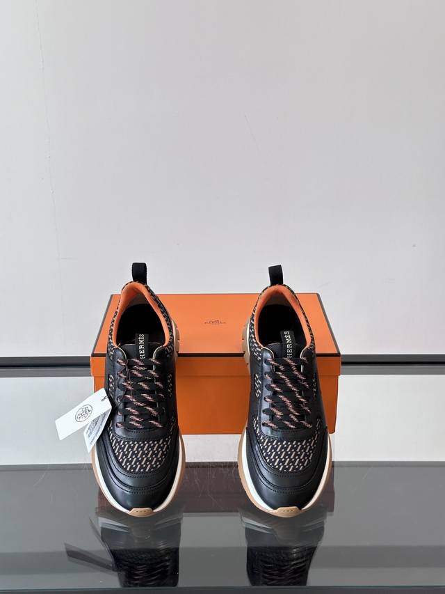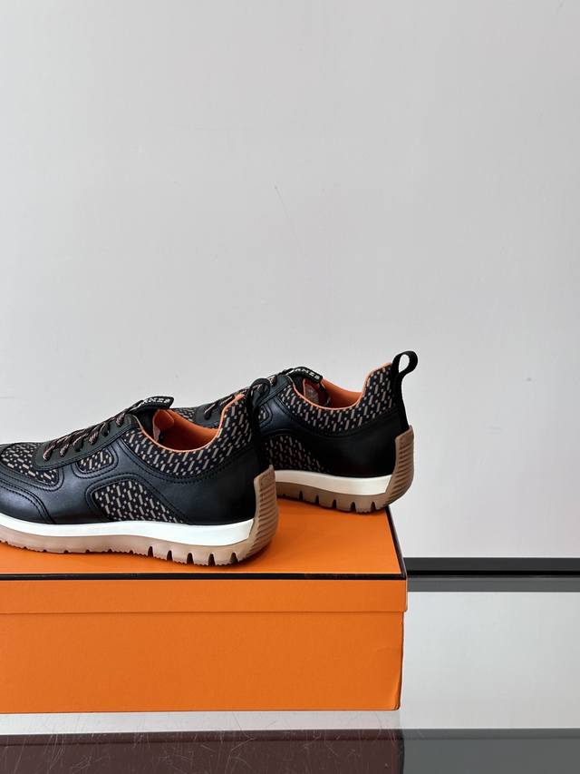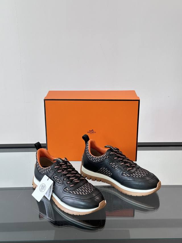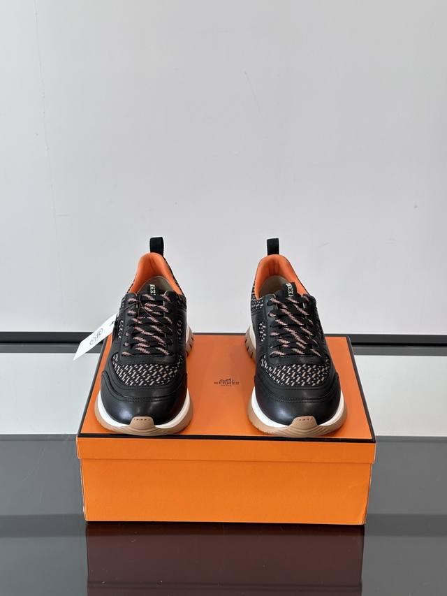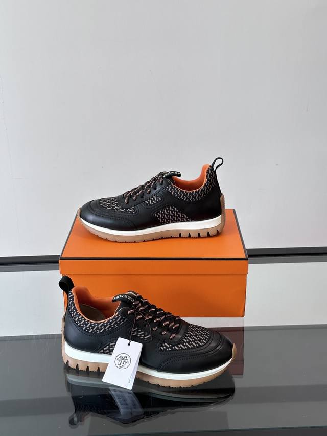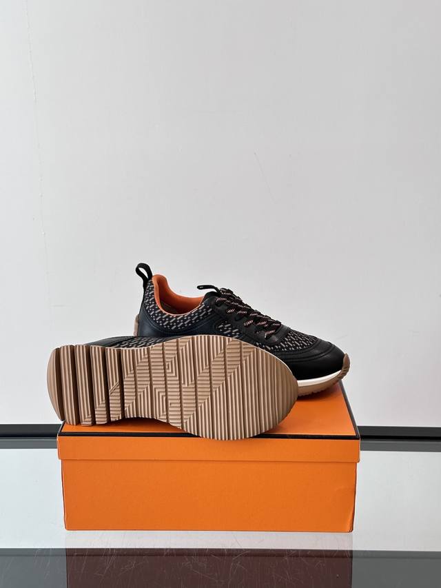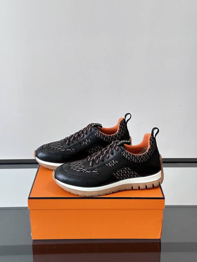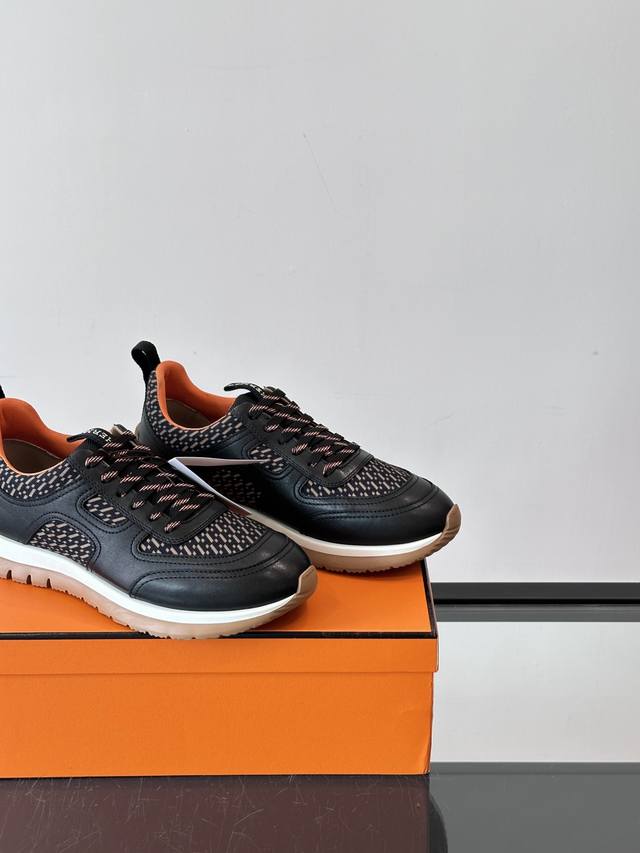 H爱马仕运动鞋,鞋面小牛皮和网布拼接打造,进口材质,质感十足,轻盈鞋底装饰撞色图案,打造百搭时尚风格。 Size:38-45