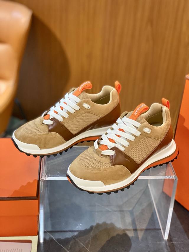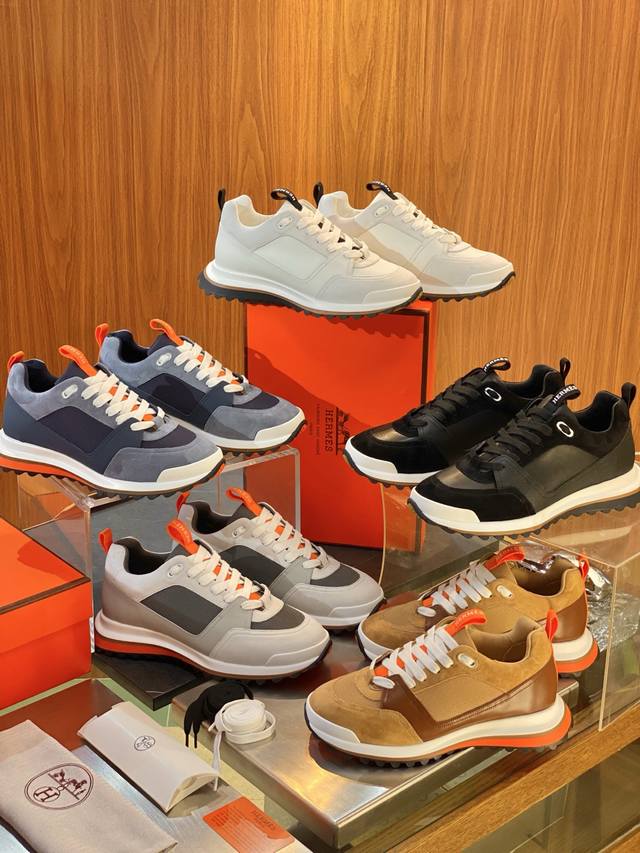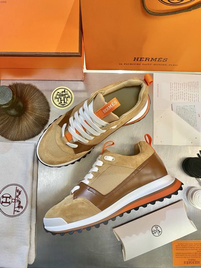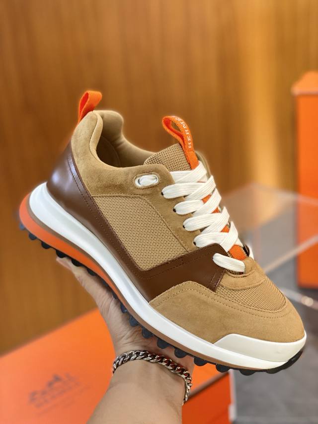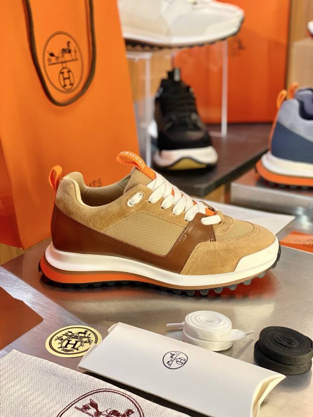 / H爱马仕Leader男士运动鞋 Size;39~44 45.46定制 小牛皮、Epsom小牛皮和麂皮山羊皮运动鞋。 轻盈几何鞋底,打造时尚都市造型。 包含第二副