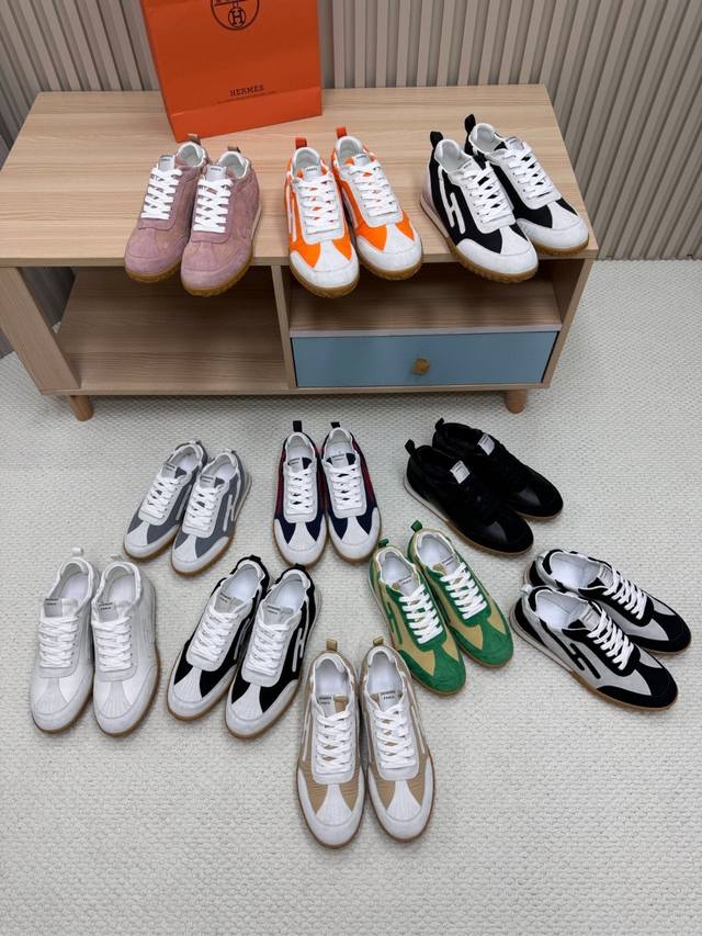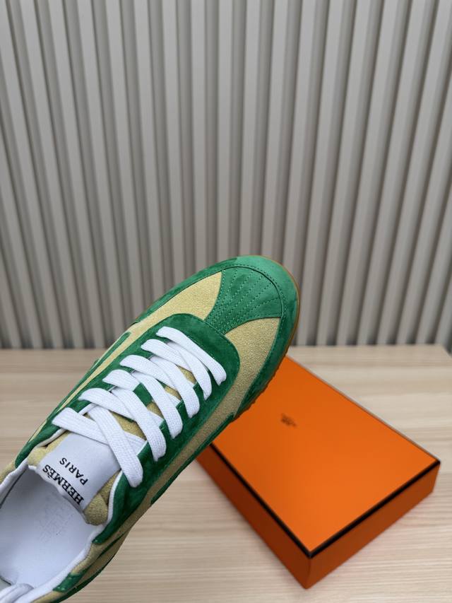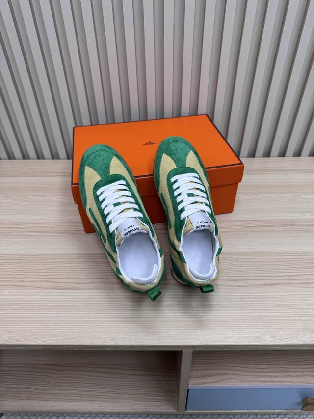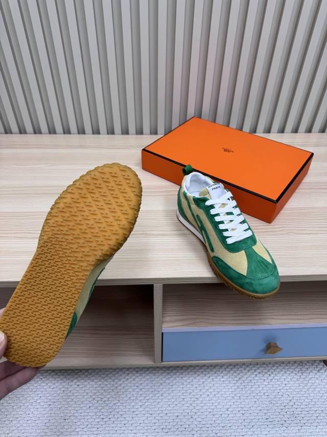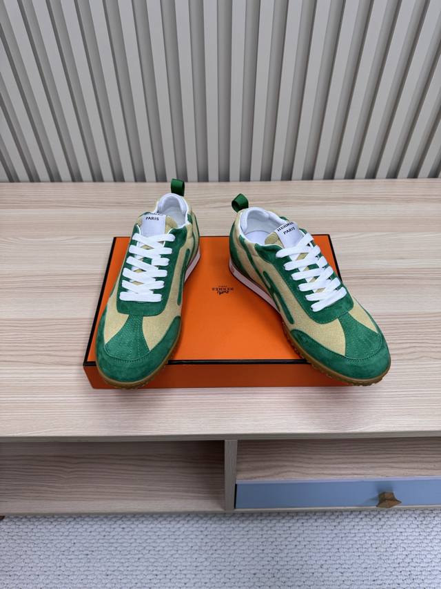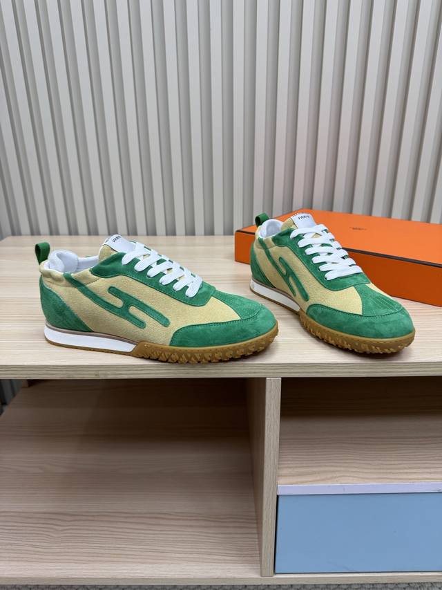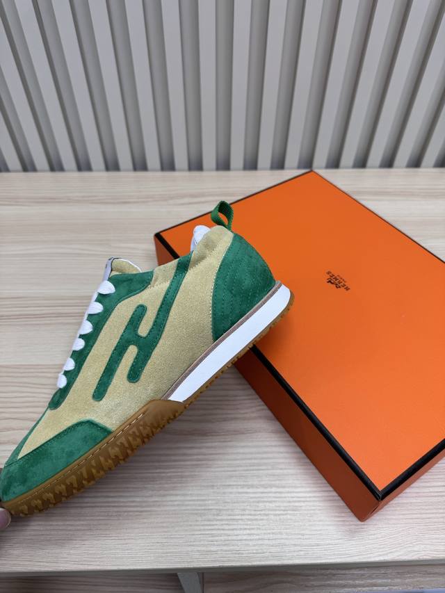 / Hermes 爱马仕 顶级版本#情侣款 24Ss休闲运动鞋 麂皮山羊皮运动鞋装饰撞色图案和标志性“H”细节,配送专柜精美包装 面料:麂皮+羽绒布 内里:混种羊里
