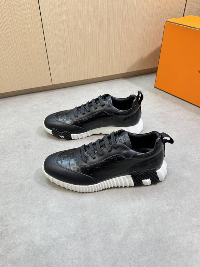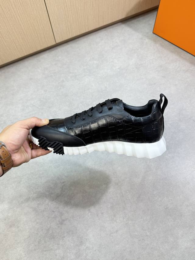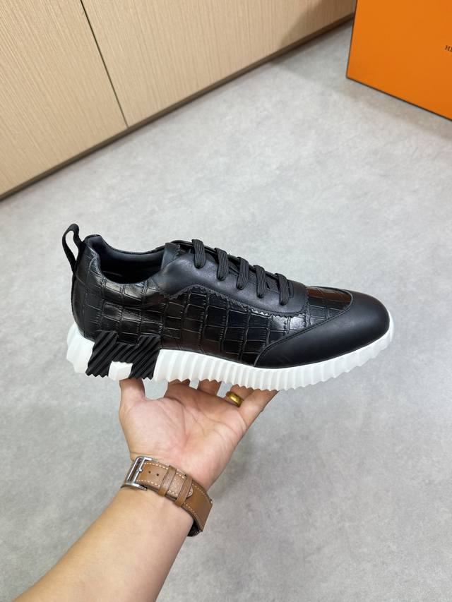 -鞋面:纳帕小牛皮、石头纹牛皮、鞋舌.空压品牌Logo、后跟品牌织带