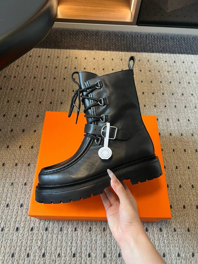 Hermes 爱马仕 25Ss 秋冬新款 Land 系带 厚底 及踝靴 短靴