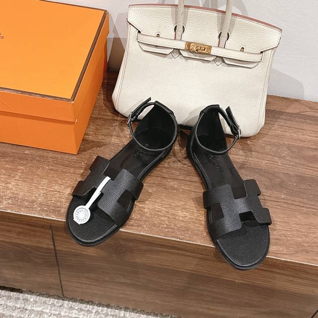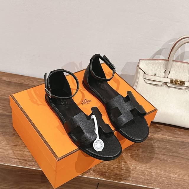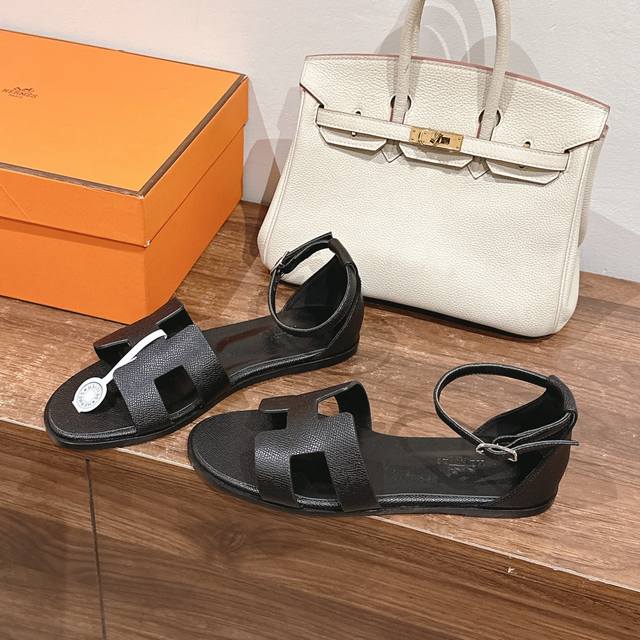 Hermes 经典Santorini 凉鞋 新设计灵感还是遵循传统经典 H 鞋面,搭配精致踝带、可调节系带,适合日常穿着、打造时尚悠闲风格