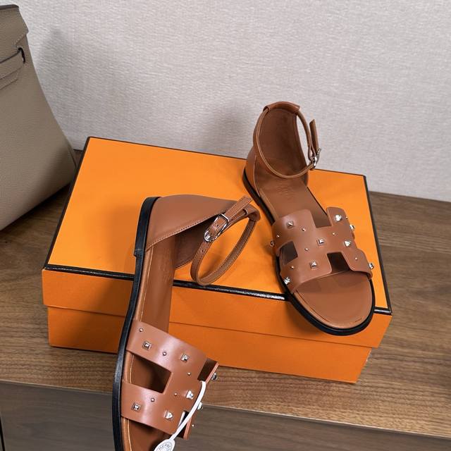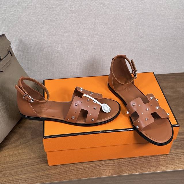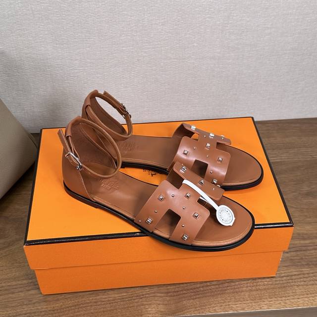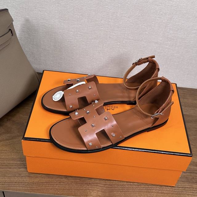 Hermes 经典Santorini 凉鞋 新设计灵感还是遵循传统经典 H 鞋面,搭配精致踝带、可调节系带,适合日常穿着、打造时尚悠闲风格