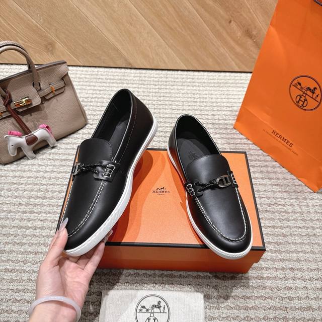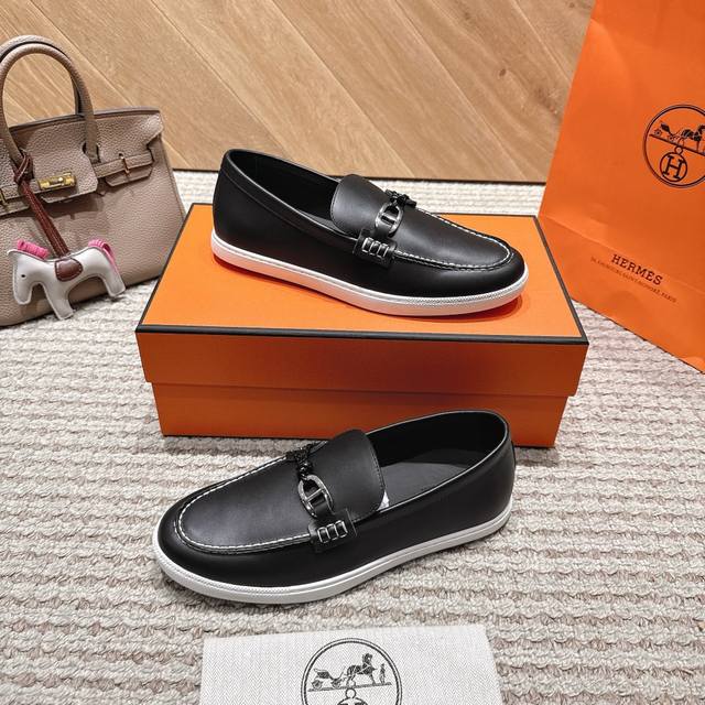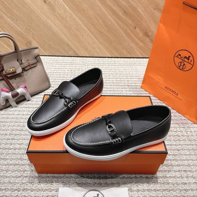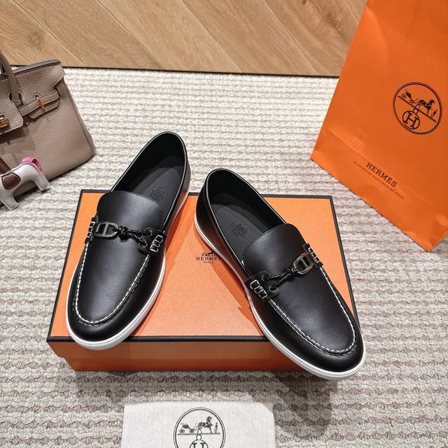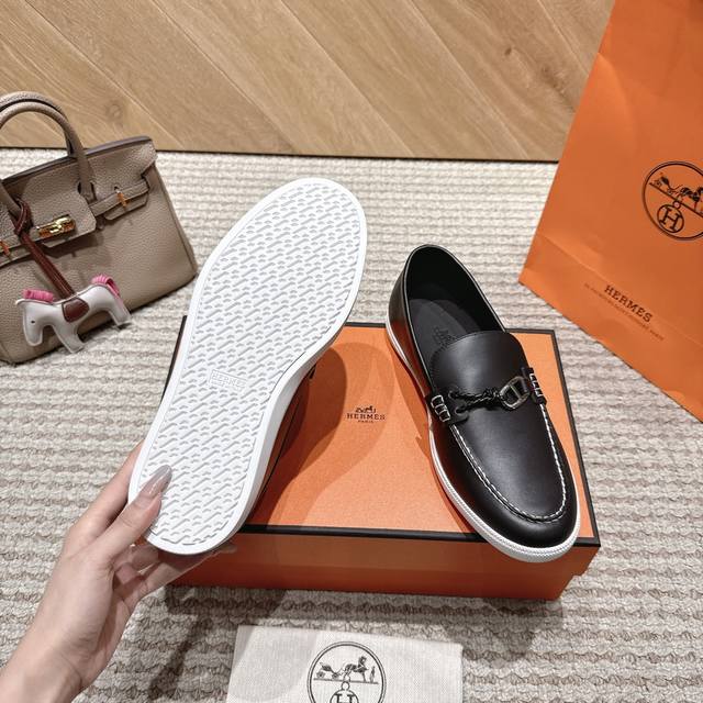 Hermes.H家秋冬乐福鞋!经楦靴型+英伦复古设计,经典耐看!原版倒模楦型,极致1:1形体H柔软细腻,呈现出精致质感! 开模定制A级高密私模大底,奢华全套包装