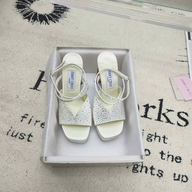 Jimmy Choo 一字交叉带凉鞋点缀的水钻Blingbling的,走在阳光下简直能闪瞎眼!粗跟设计走路稳稳当当,完全不用担心会崴脚哦!方头的设计复古又时尚,搭配小裙子或者牛仔裤都超好看!无论是参加宴会还是日常出街,这双凉鞋都能让你成为焦点!
