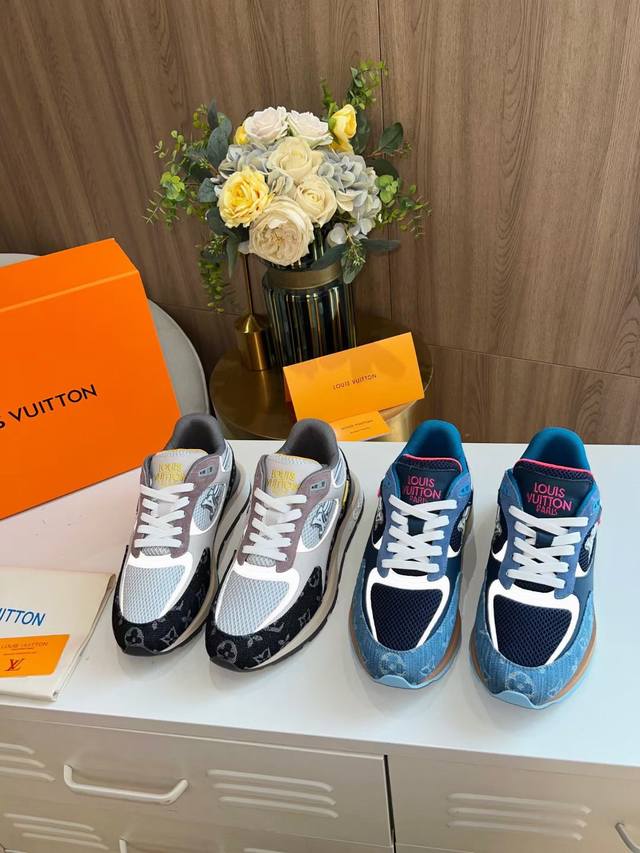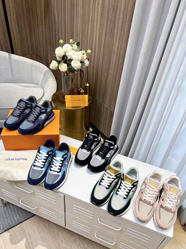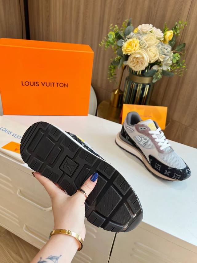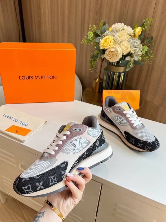 L家 顶级 -Size :39-44 38,45.46定做 本款Run A Way运动鞋取材于进口网格面料和绒面牛皮。内里采用透气运动鞋专用网面 轻型微型底绽放