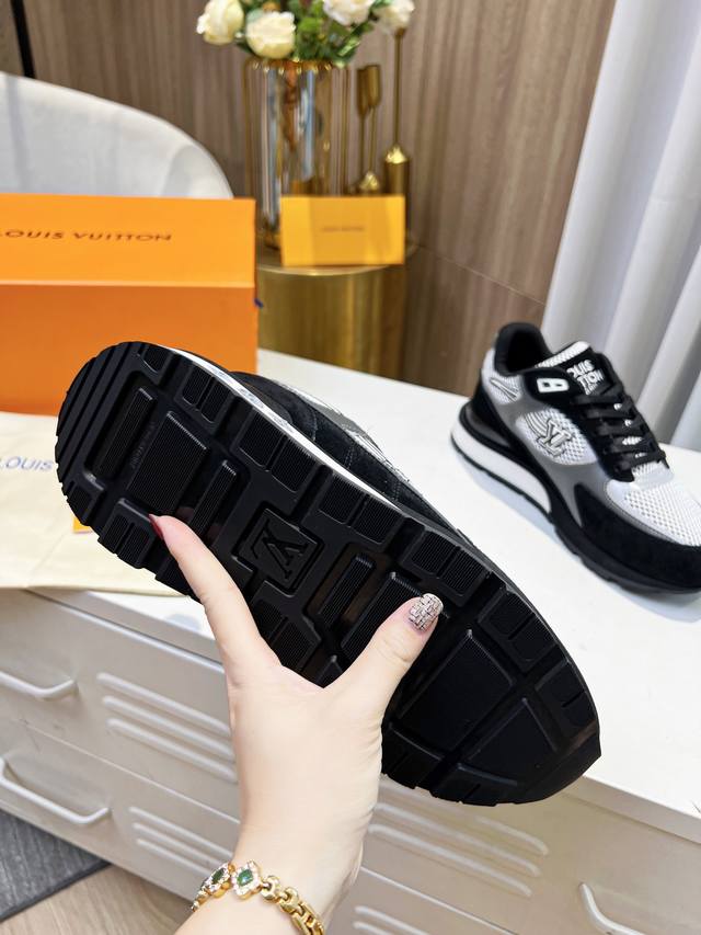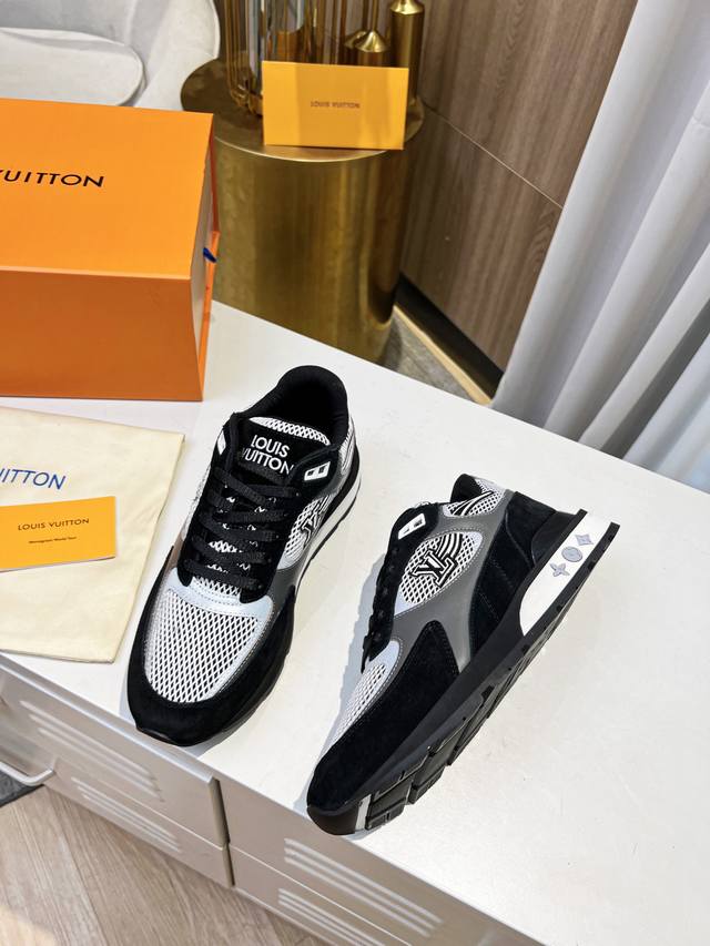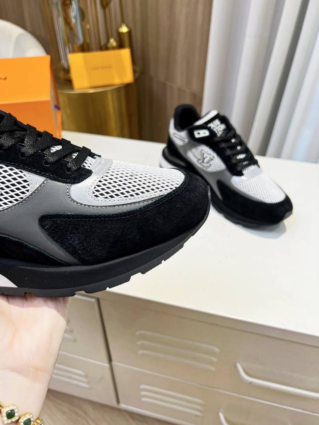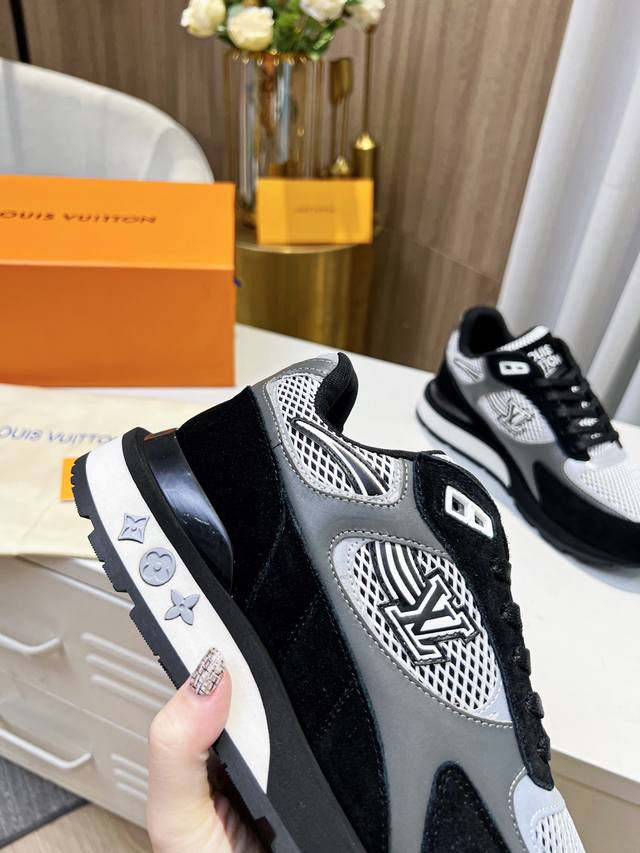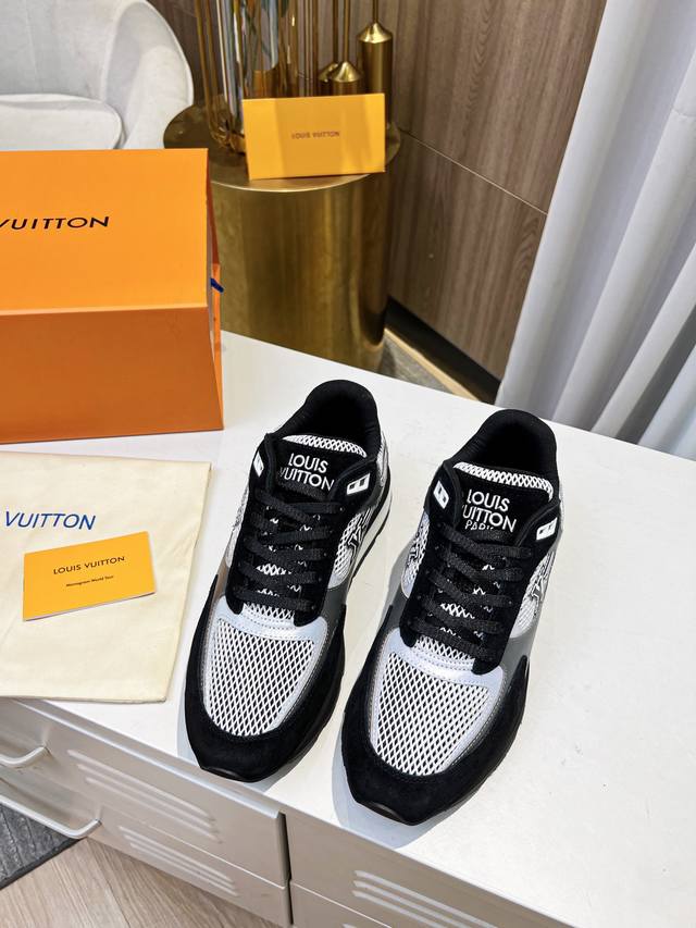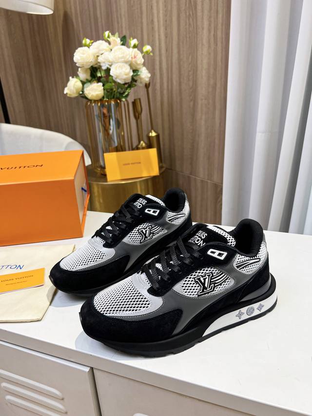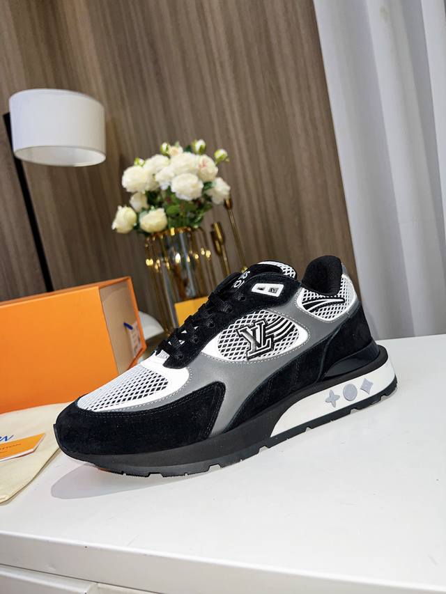 本款Run A Way运动鞋取材于进口网格面料和绒面牛皮。内里采用透气运动鞋专用网面 轻型微型底绽放M Ono Gram花卉 再度诠释跑鞋灵感 侧边Logo犹如舞动长尾 栩栩如生。 46。