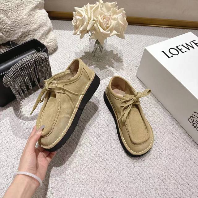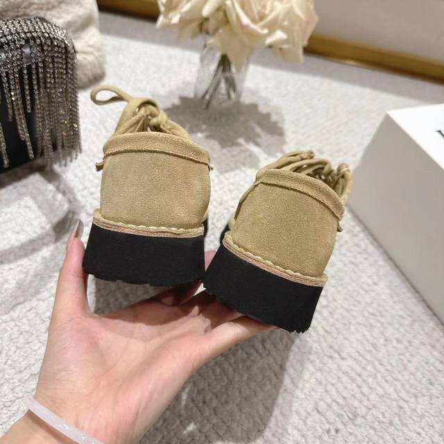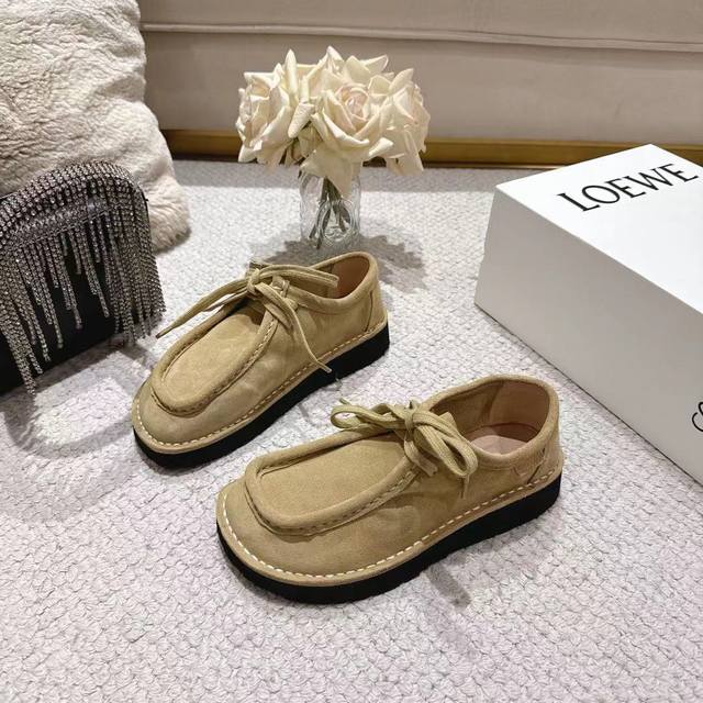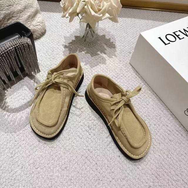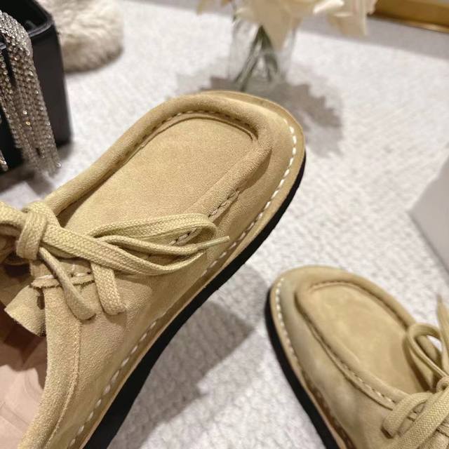 超多明星网红种草 设计师鬼马星空的设计 打破常规 圆头圆脑的鞋头可可爱爱 一鞋两穿 后跟可踩下当英伦拖 超好搭配 上脚软软糯糯 超级无敌舒适 面料:进口麂皮 内里: 羊皮 大底:超轻发泡大底 Size:35-40