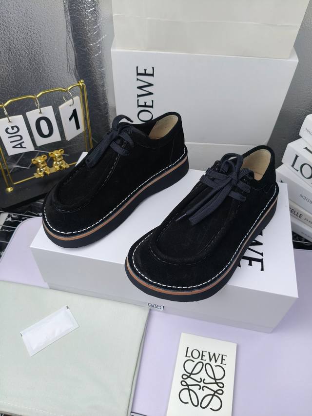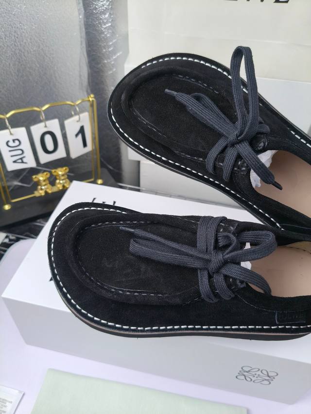 罗意威 25Ss秋冬新款明星同款绑带高帮复古英伦风休闲鞋乐福鞋