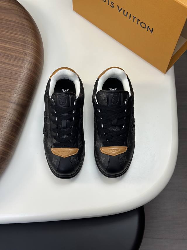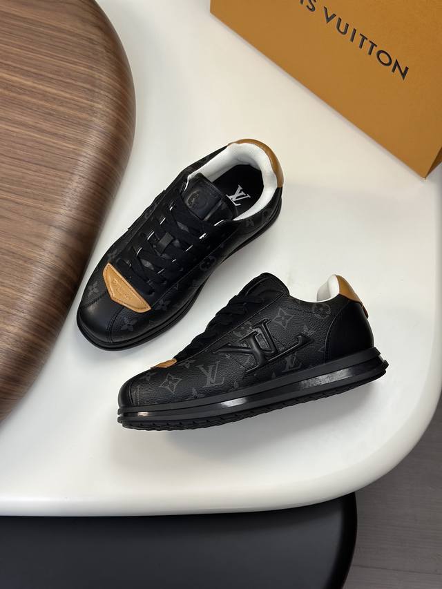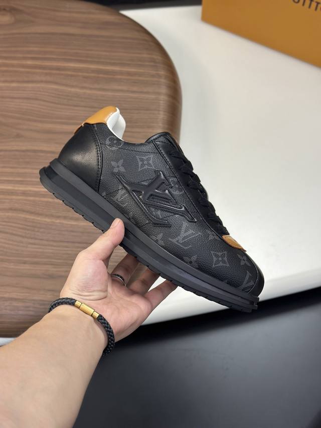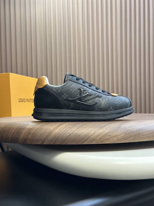 Lv-路易威登-经典走秀新款,原版1:1开发!!上脚非常舒适 奢侈用料,做工精细,中底印有欧洲制造英文字母,鞋面由意大利进口小牛皮拼接,侧边饰有品牌Logo标志及签名,最新乳胶垫脚网布内里,脚感超舒适。原厂特供原版双色Tpu组合大底。套包工艺 固特异缝合锁边