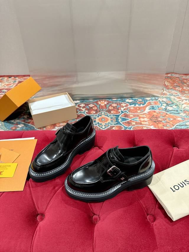 Lv路易威登 驴牌L家 秋冬走秀款 玛丽珍 一脚蹬 懒人 厚底 乐福鞋 厚底跟高版型设计非常显得腿长 可以穿搭优雅气质服饰 模特搭配 网红大爱款 独特的设计风格
