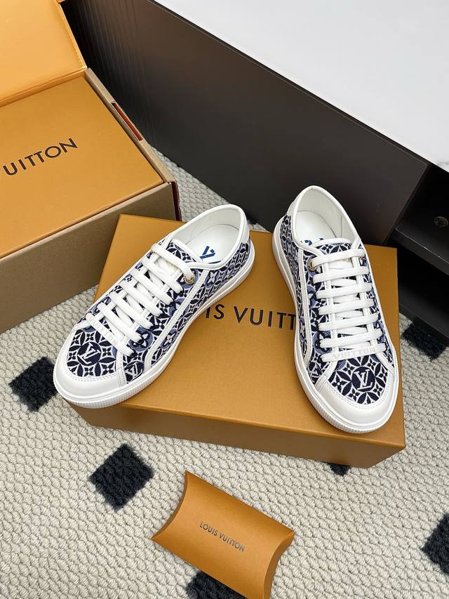 Lv路易威登L家 驴牌最新Lagoon系列 厚底丹宁牛仔布 压花 老花 厚底 休闲运动鞋 滑板鞋