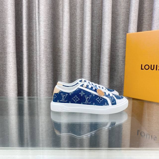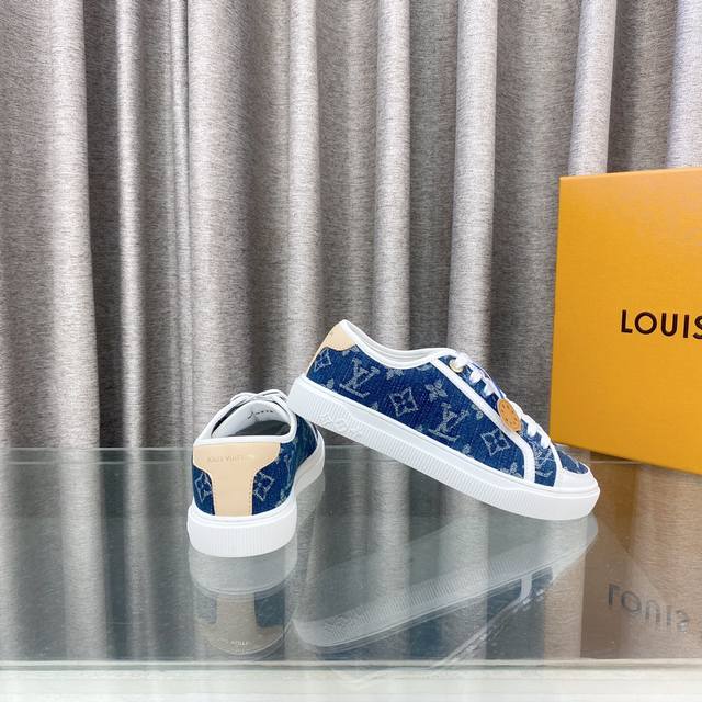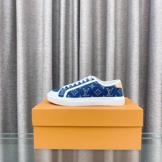 原版购入开发 做货 这款Lagoon 取材 Monogram 丹宁布,为经典设计注入复古气息。皮革饰边跃现标识,铭纹孔眼、镶边和鞋带彰显考究细节,点缀 Monogram 花卉的橡胶外底完善整体