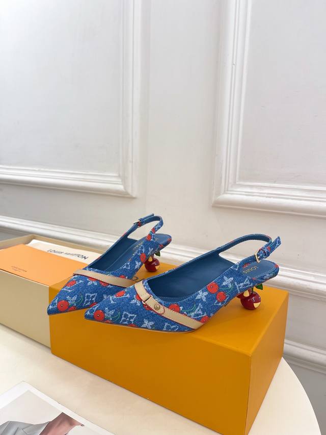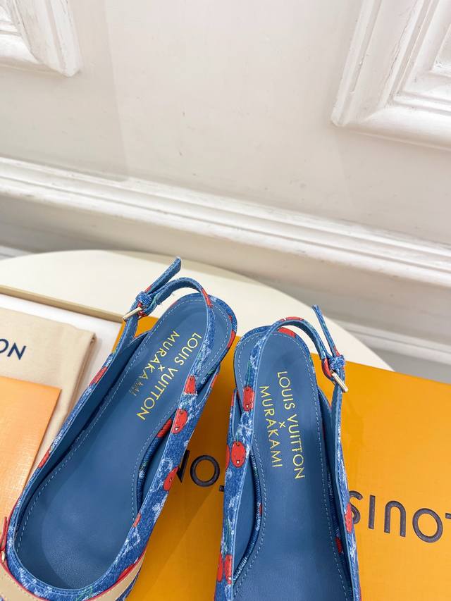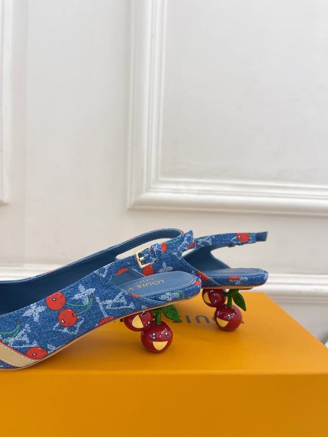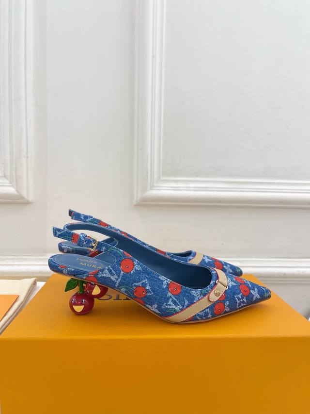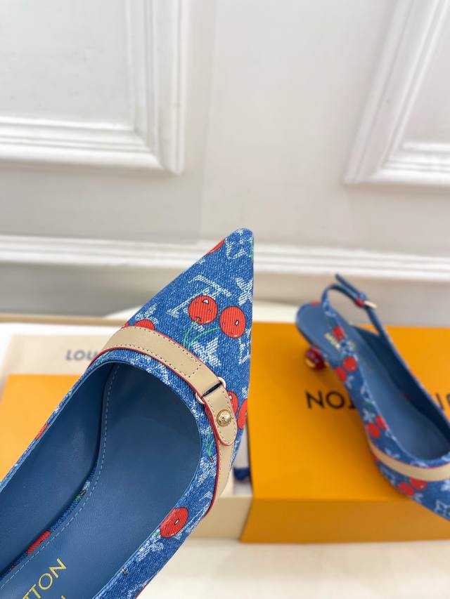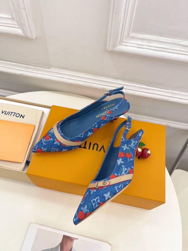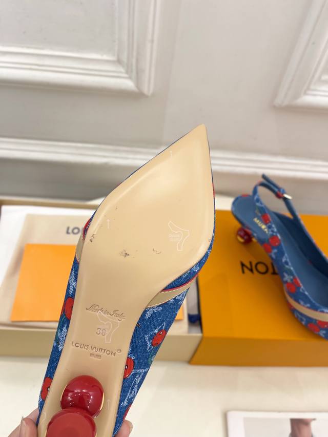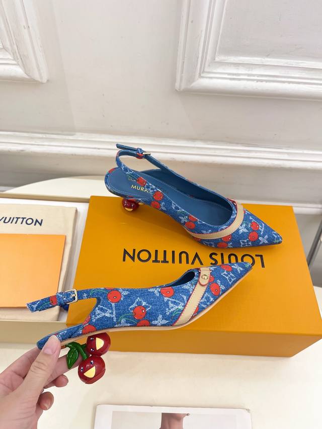 专柜主打最新款L村上隆联名樱桃系列尖头露跟高跟鞋 硬货上新