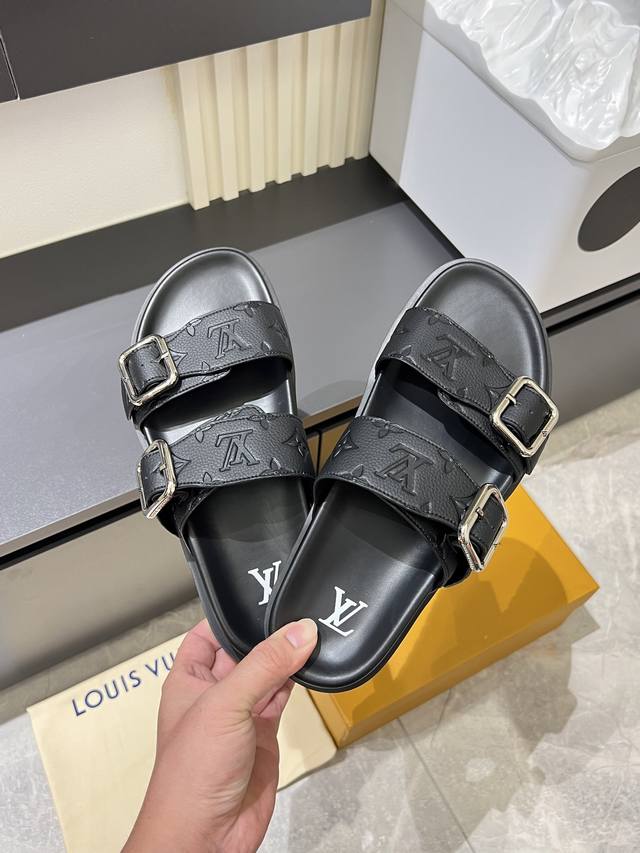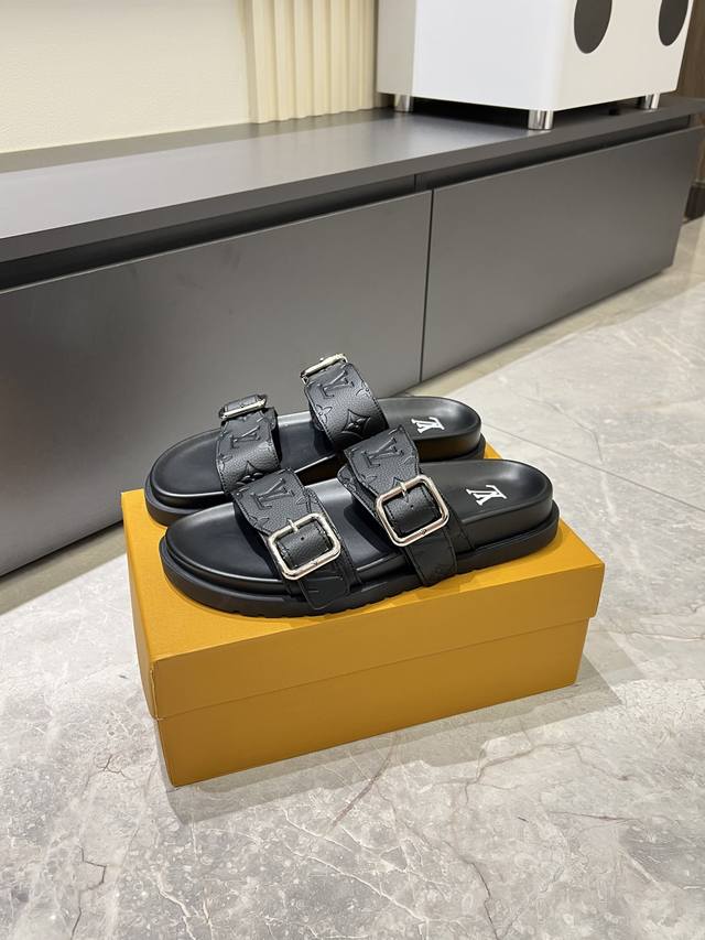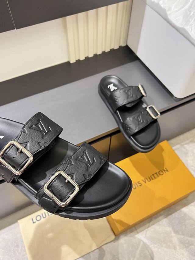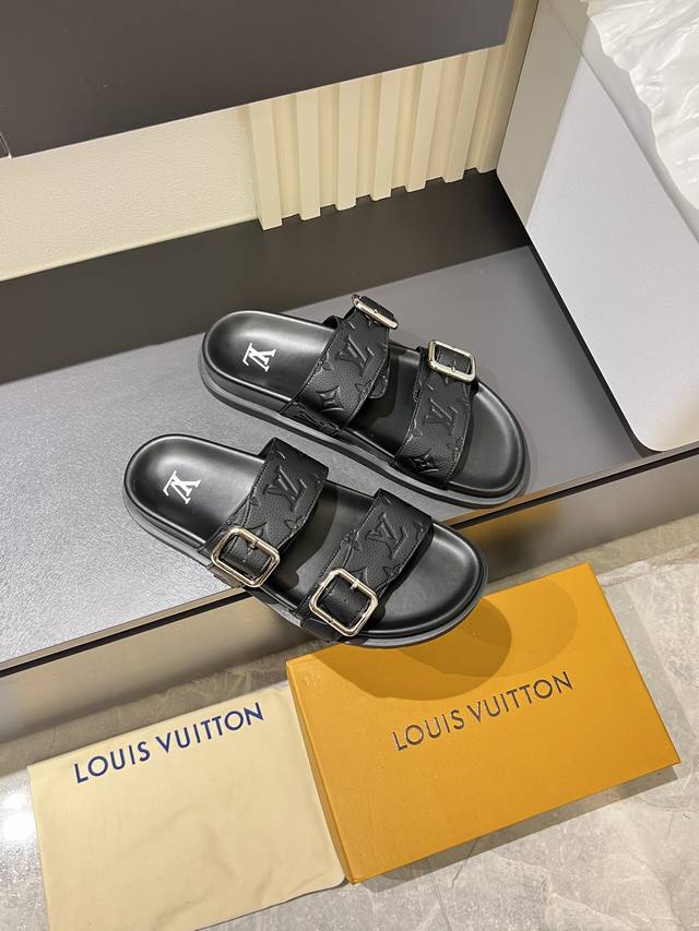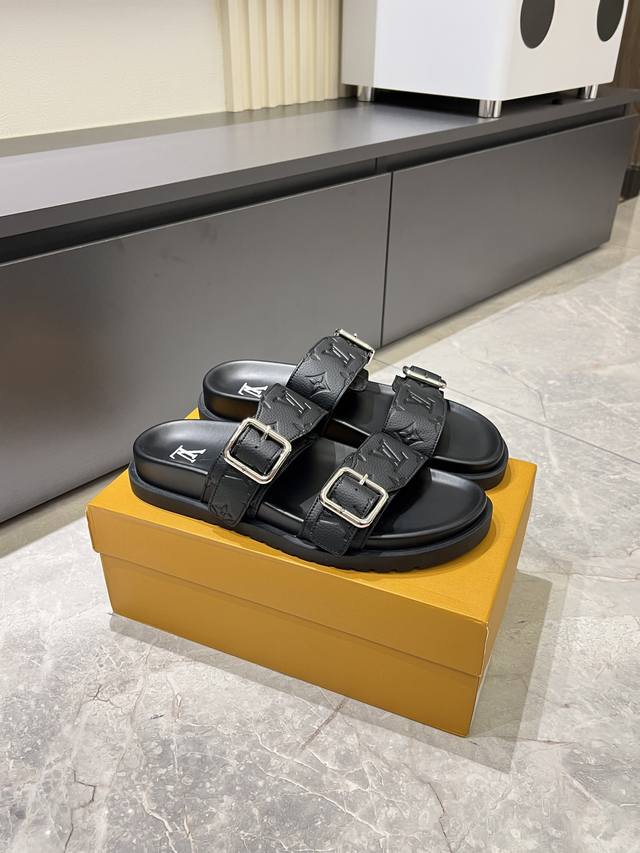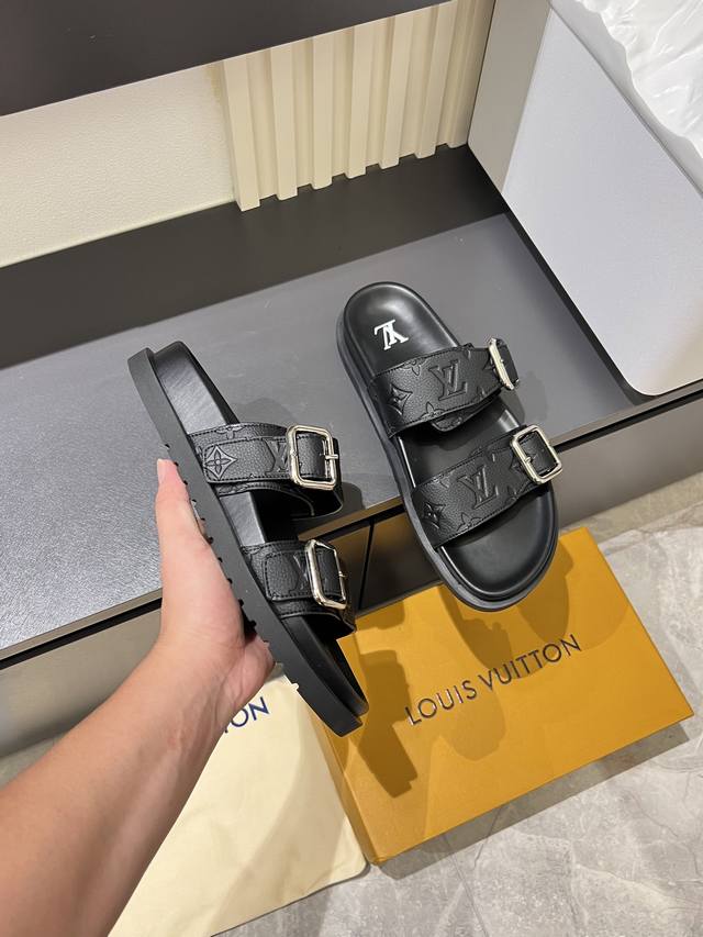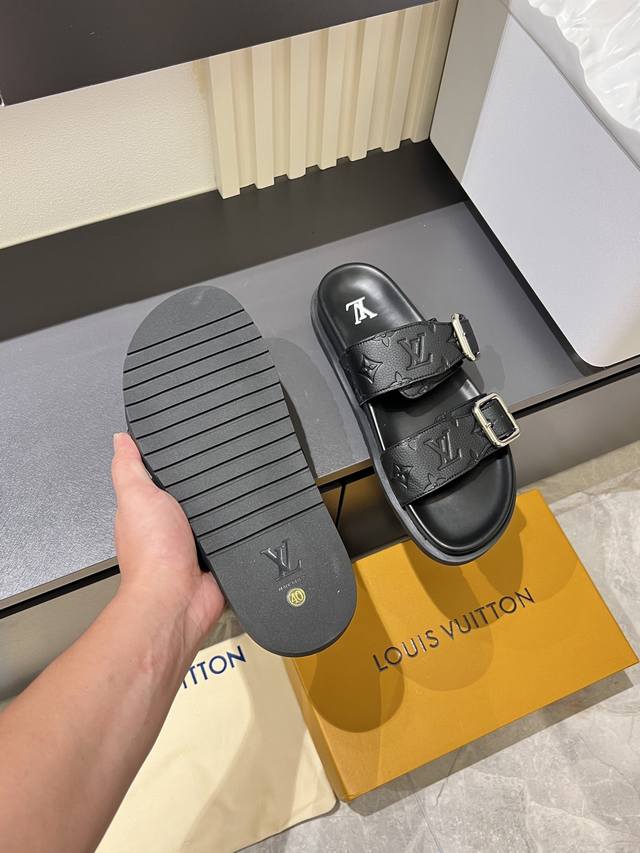 L.V 驴家高端男士夏季拖鞋, 经典老花系列,一字带宽松设计,别致的色彩拼接效果,个性鲜明,时尚潮流穿搭必备款式,轻盈舒适。轻质韧性橡胶内底,微型凸纹发泡外底,超级舒适脚感!码数:38-45!