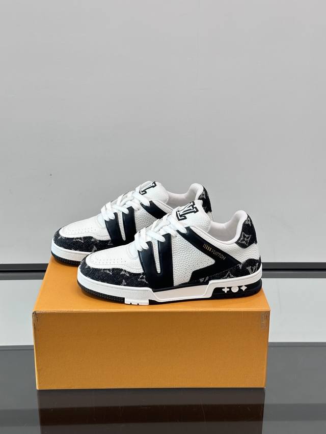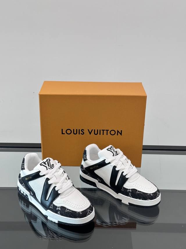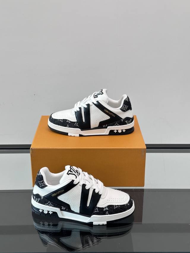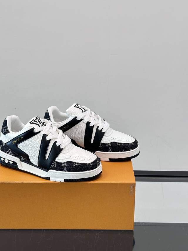 Lv 驴家 路易威登 新配色 情侣款Trainer运动鞋,本款 Lv Trainer 运动鞋取材柔软粒面小牛皮,呈现纯净色调,后部#54标识追溯品牌诞生于1854年,设计师手写体品牌标识点缀一侧,Virgil Abloh亲自操刀设计,非常具有纪念价值的一款运动鞋,全新Lv路易威登Louis Vuitton Trainer Sneaker Low休闲运动文化百搭篮球板鞋