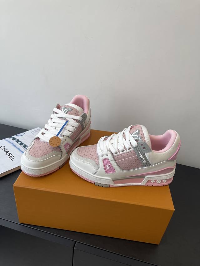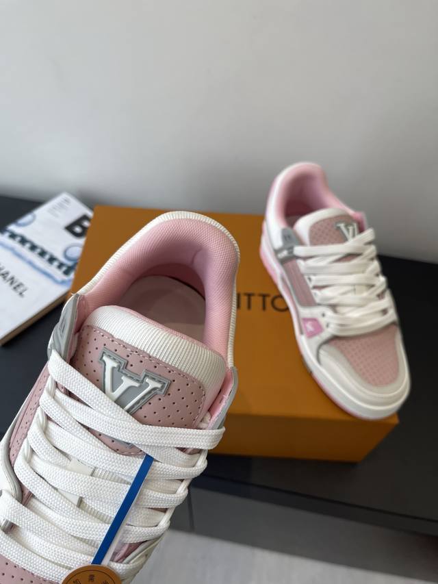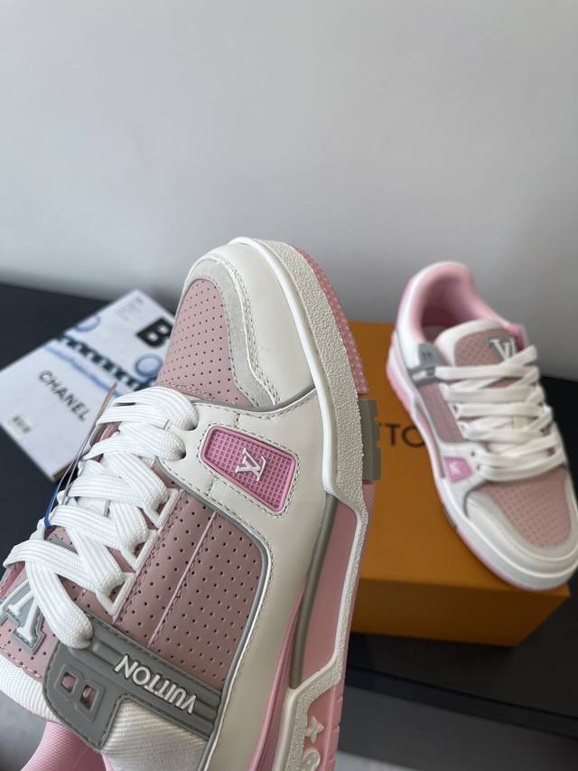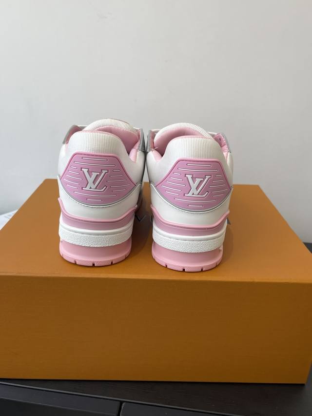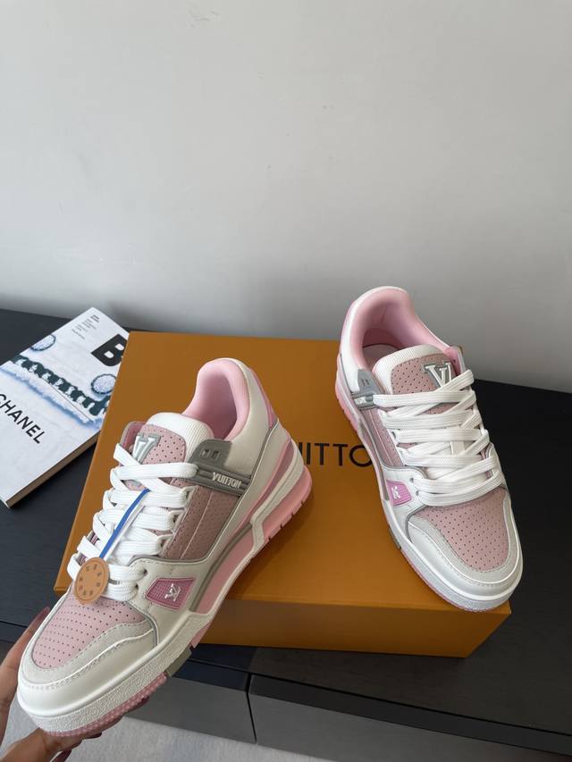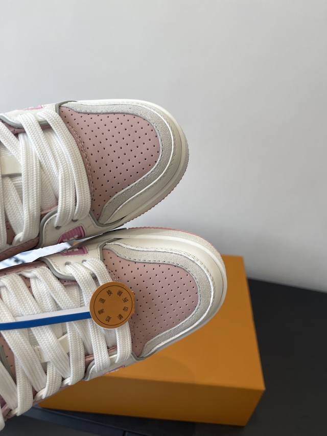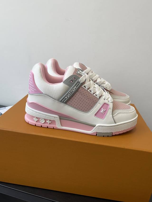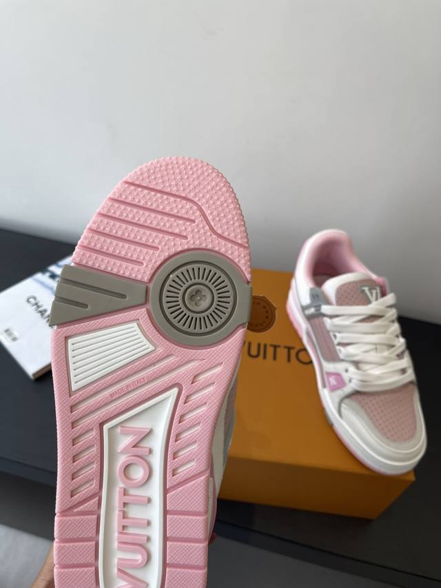原版购入开发 做货 本款Lv Trainer 运动鞋选用牛皮革塑造繁复鞋面,需要数小时的匠心缝制方可完成。经典构型出自 Virgil Abloh 之手,展现复古篮球鞋的灵感启发