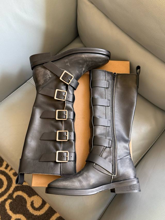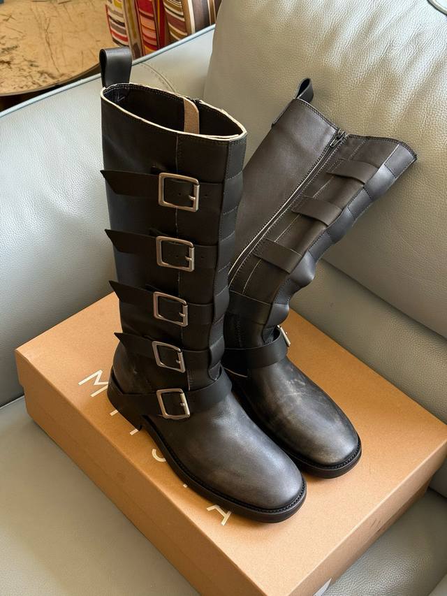 Miist* 25Ss秋冬新款真皮多扣不过膝长靴