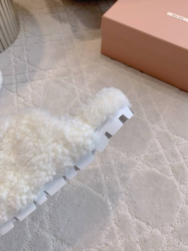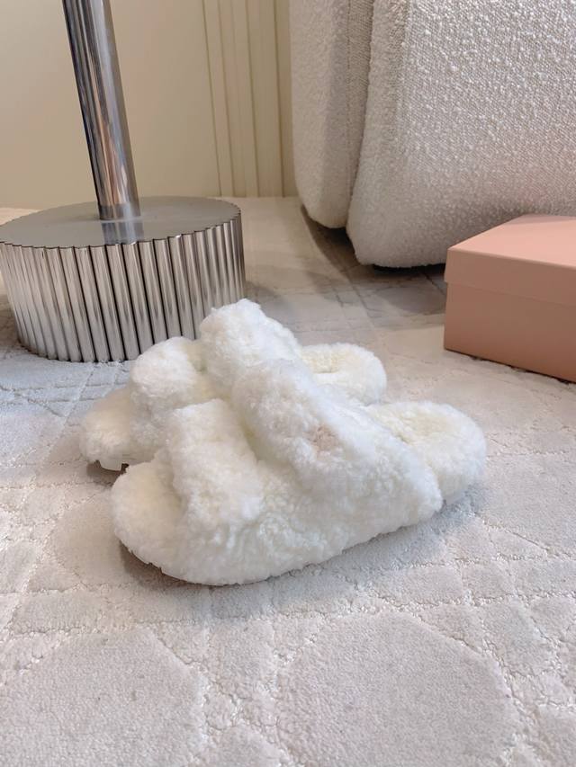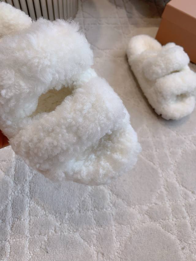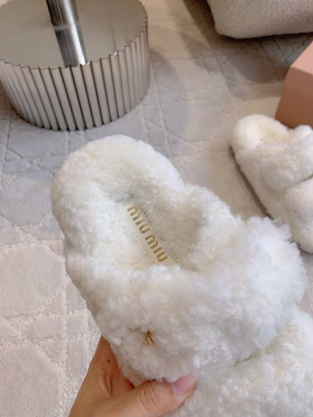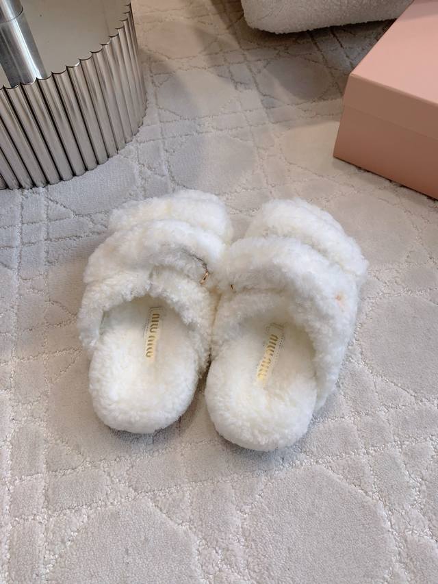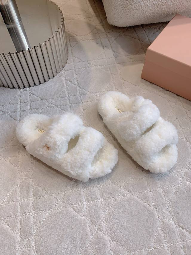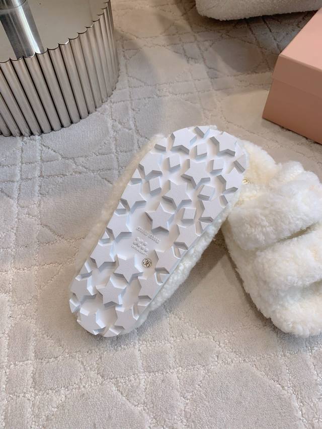 Miu 新款毛毛拖鞋 超级厚实的澳洲进口羊毛 犹如踩在云朵般的感觉 超级舒适 经典百搭款 面料进口澳洲羊毛 原版开模大底 尺码35-39 40 41定做
