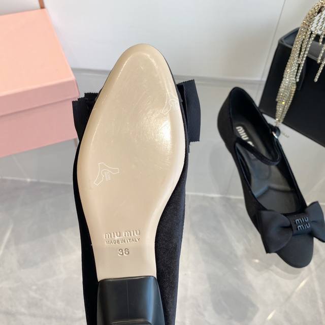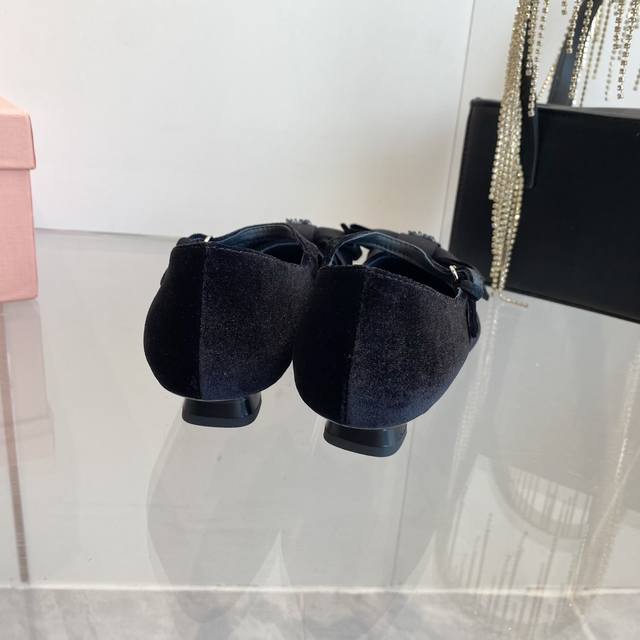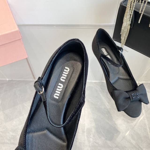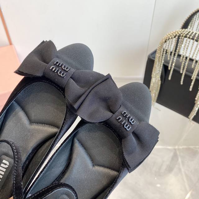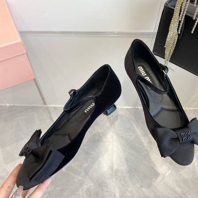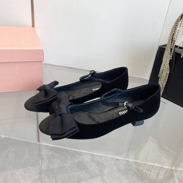 Miu Miu 新款春夏玛丽珍单鞋 蝴蝶结天鹅绒淑女范 低跟鞋