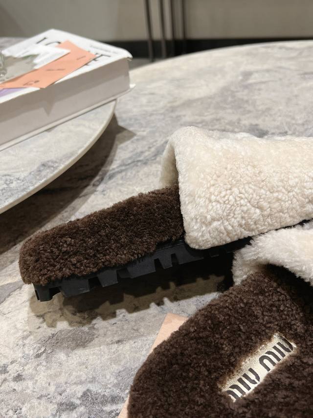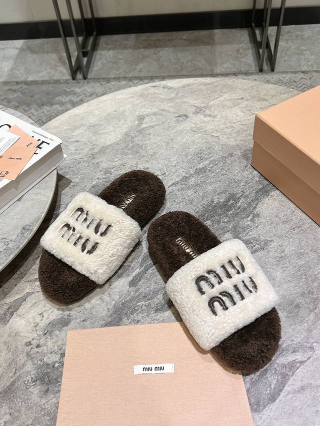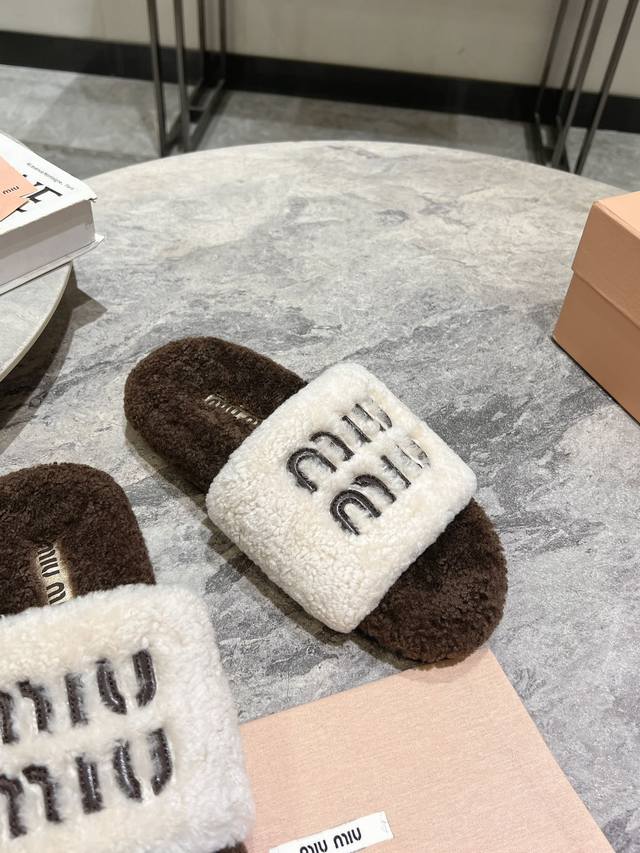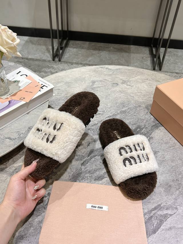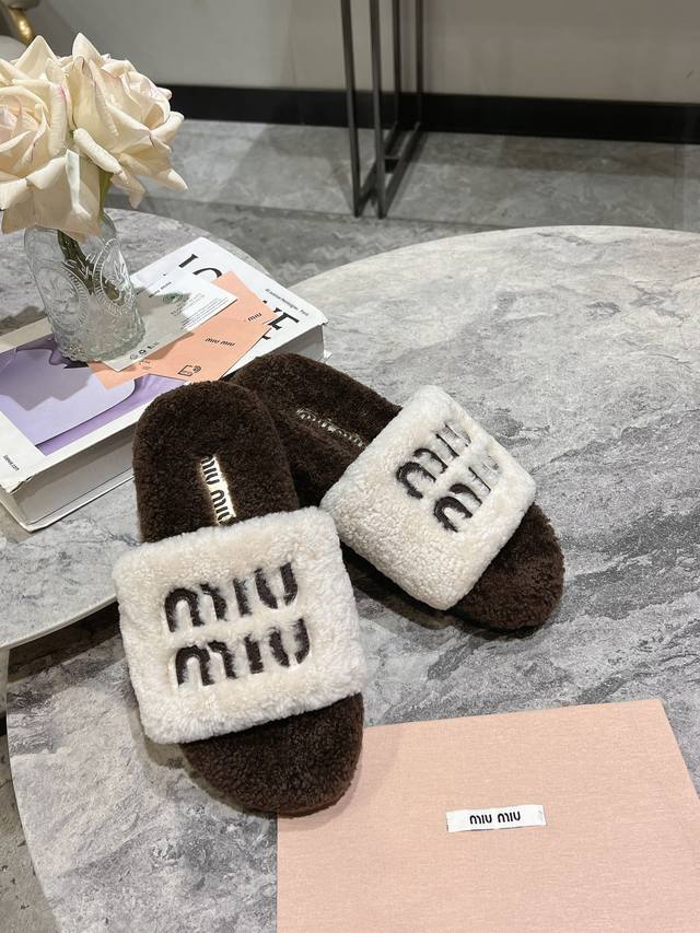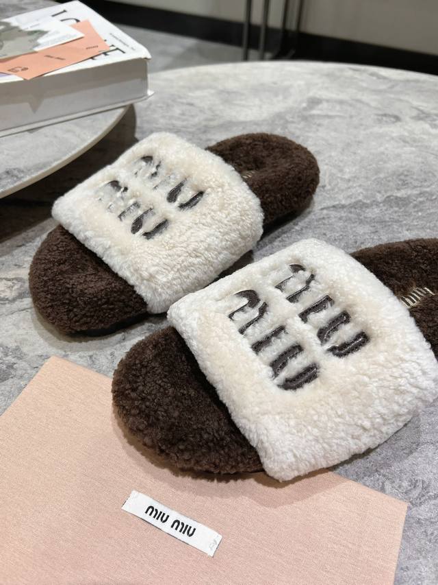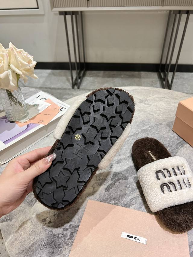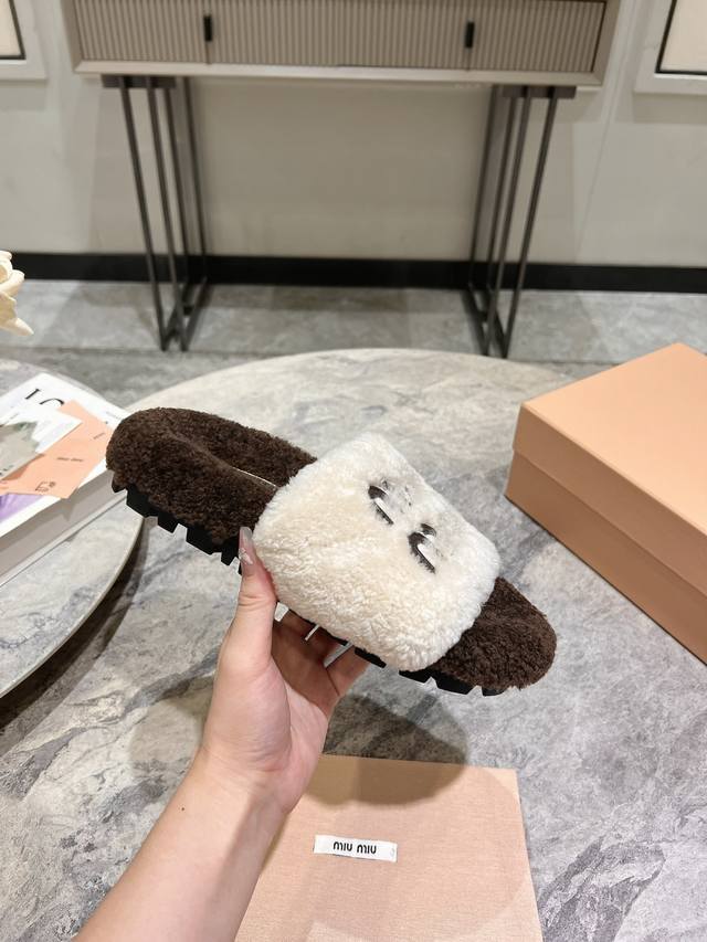 / Miu Miu 缪缪秋冬新款刺绣羊毛拖鞋 欧洲进口A级羊毛 与原版一致满鞋全部采用纯羊毛 鞋面和垫脚Logo采用混种羊皮 大底与原版一样的Tpu材质底片耐磨防滑