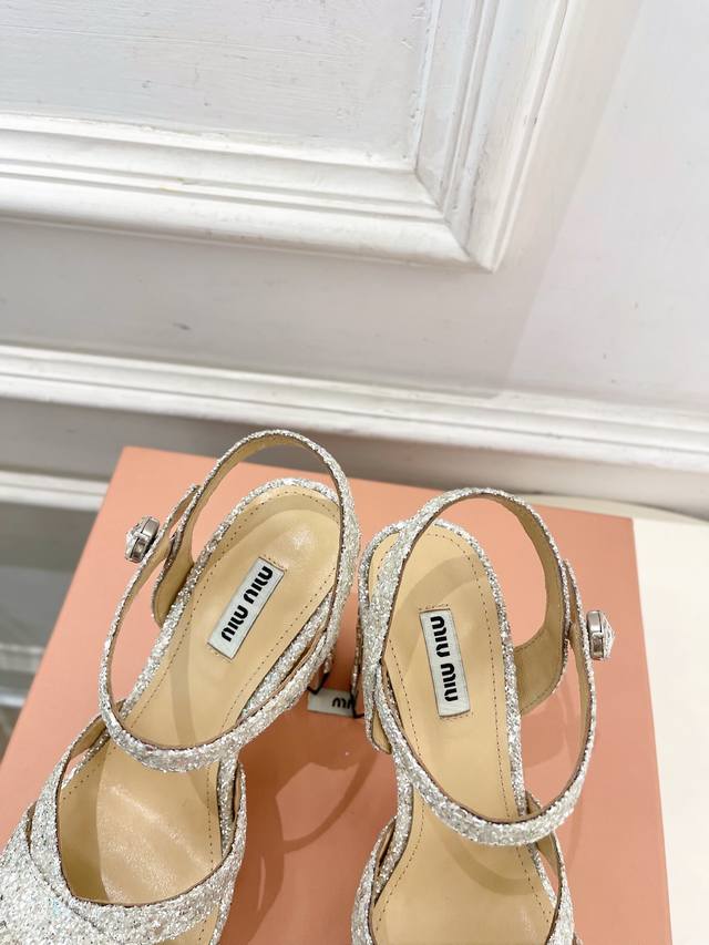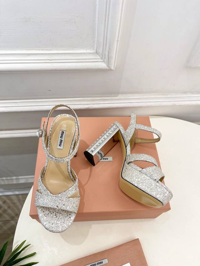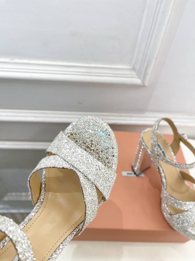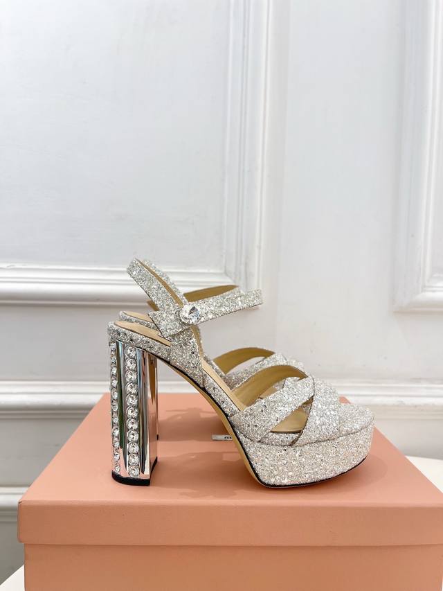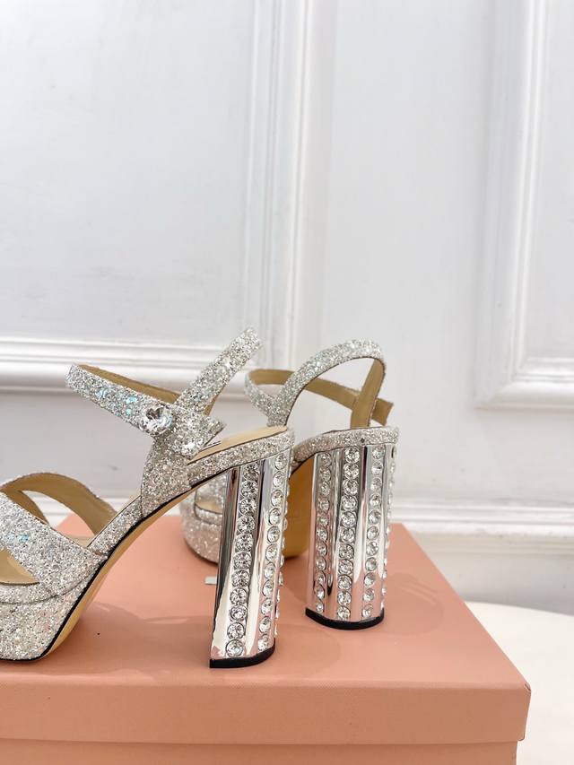 2025春夏新品 专柜主打最新走秀款 金属水钻跟防水台凉鞋 火爆上新!