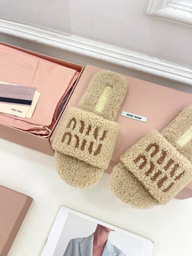 2025秋冬新品 专柜主打最新走秀款 经典字母平底毛毛拖鞋 火爆上新!