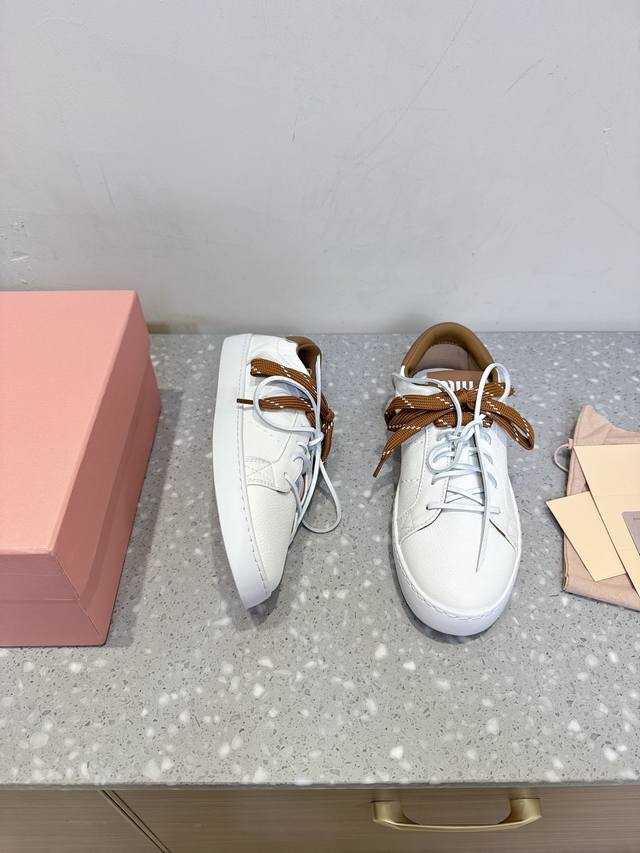Miu Miu 缪缪 25Ss秋冬新款 系带 小白鞋 休闲鞋