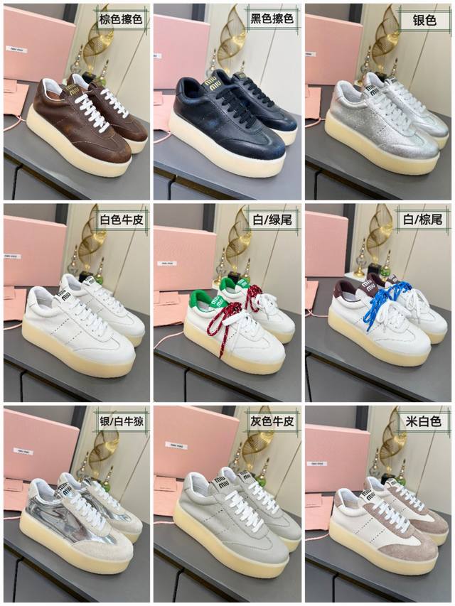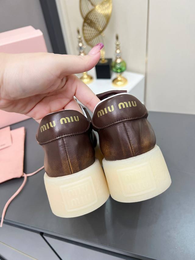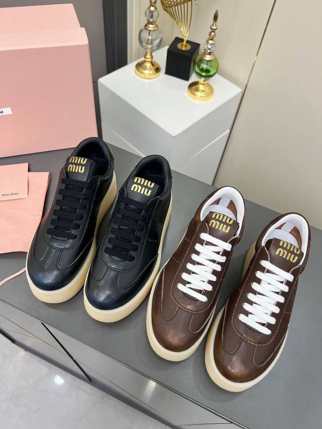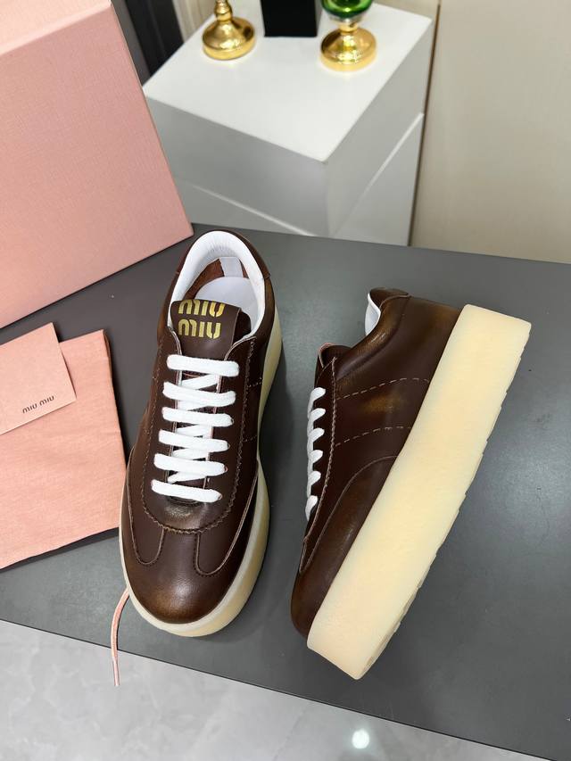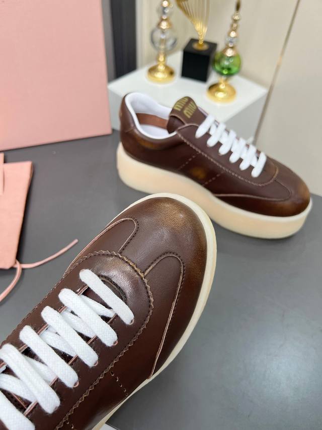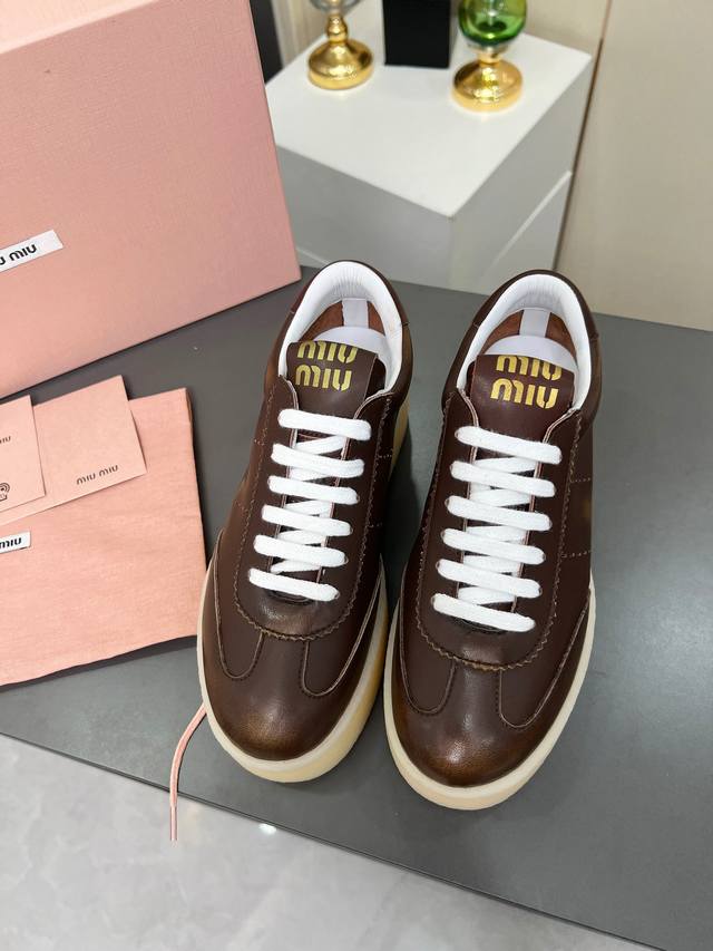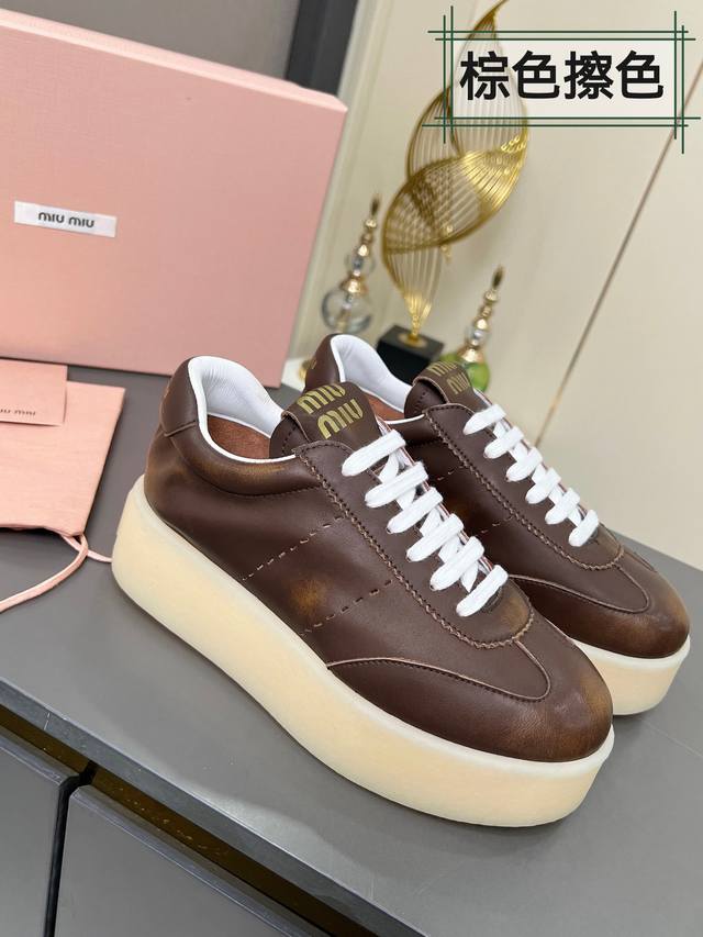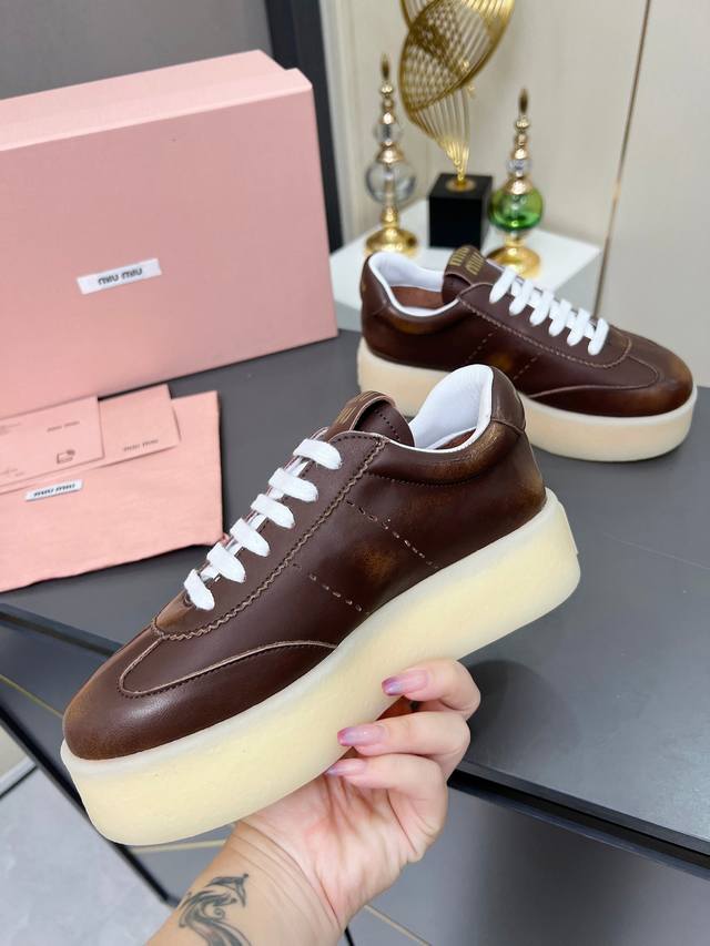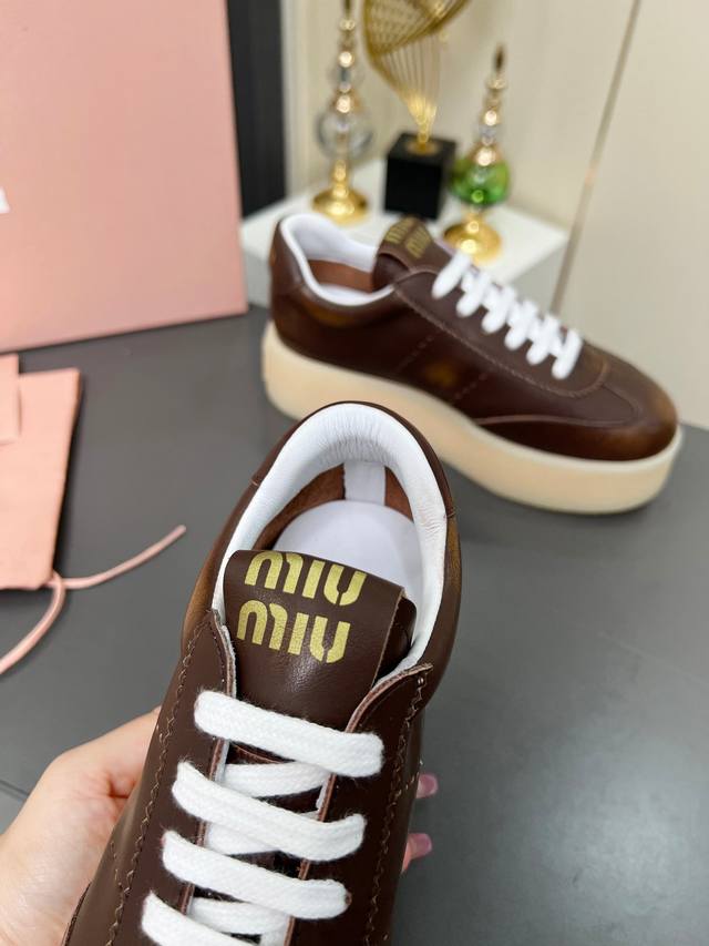 Miu Miu 缪缪2025新款休闲小白鞋,各大品牌中脱颖而出的四季鞋颜值担当火爆款脏脏鞋,不得不入的一款~做旧时尚,简约高级 随意搭配上脚非常舒适,年度必入款!