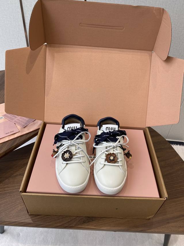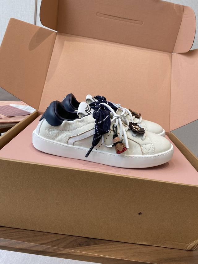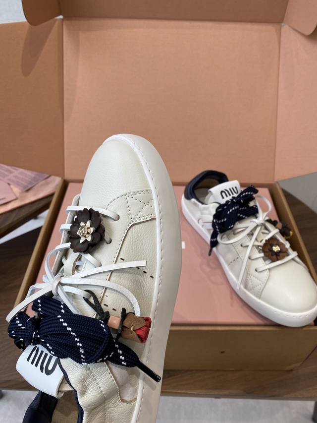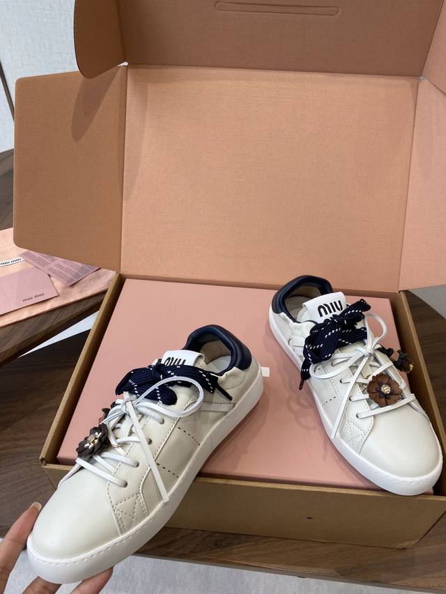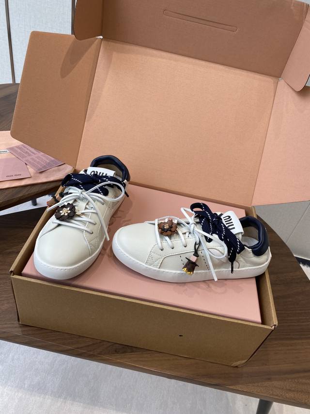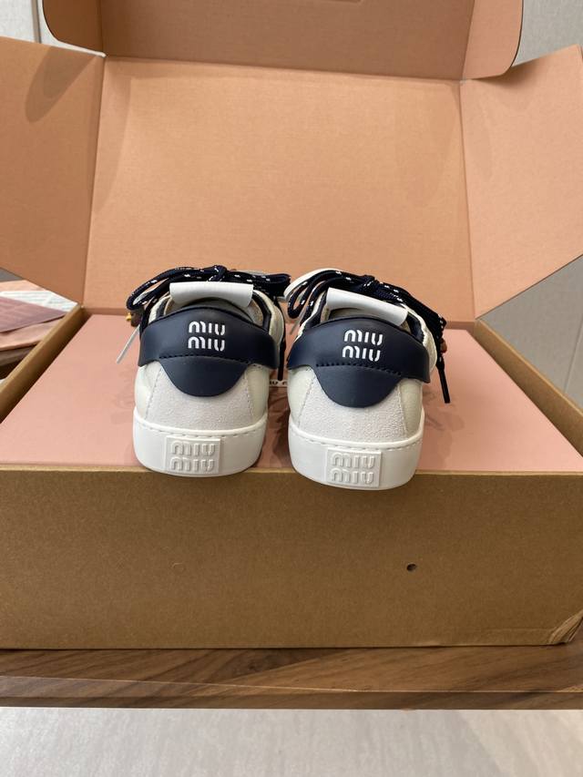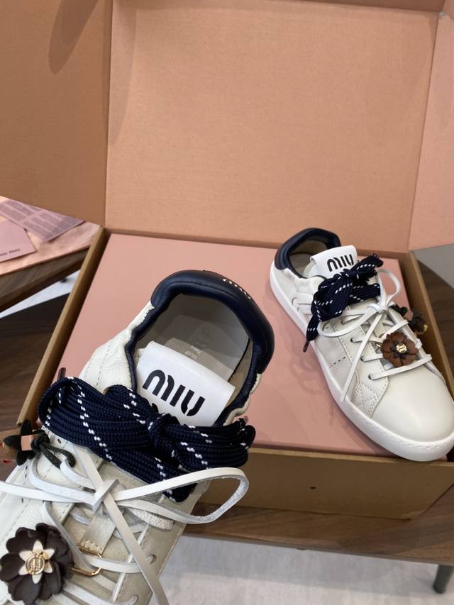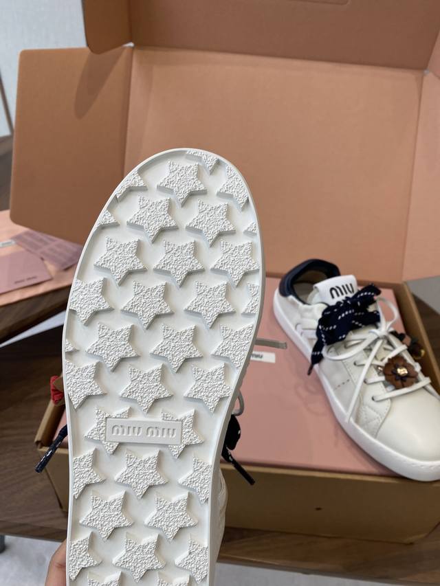 Miu Miu 25Ss 缪缪薄底饼干底 25Ss 春夏新款英伦风系带 小白鞋 休闲鞋