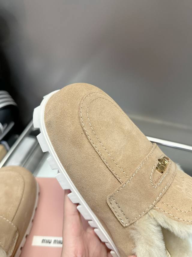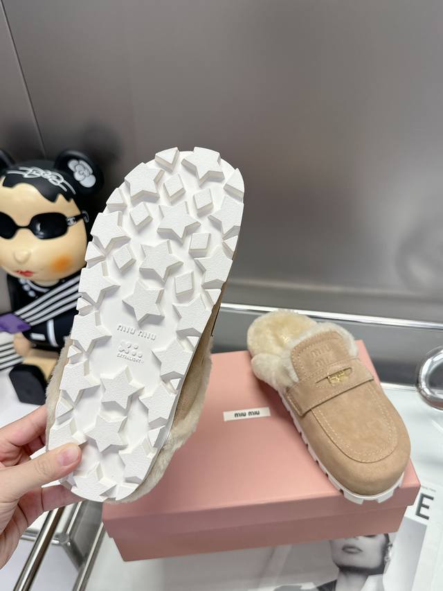 Miumiu 缪缪 24Ss秋冬新款 金币包头羊羔毛拖穆勒半拖鞋